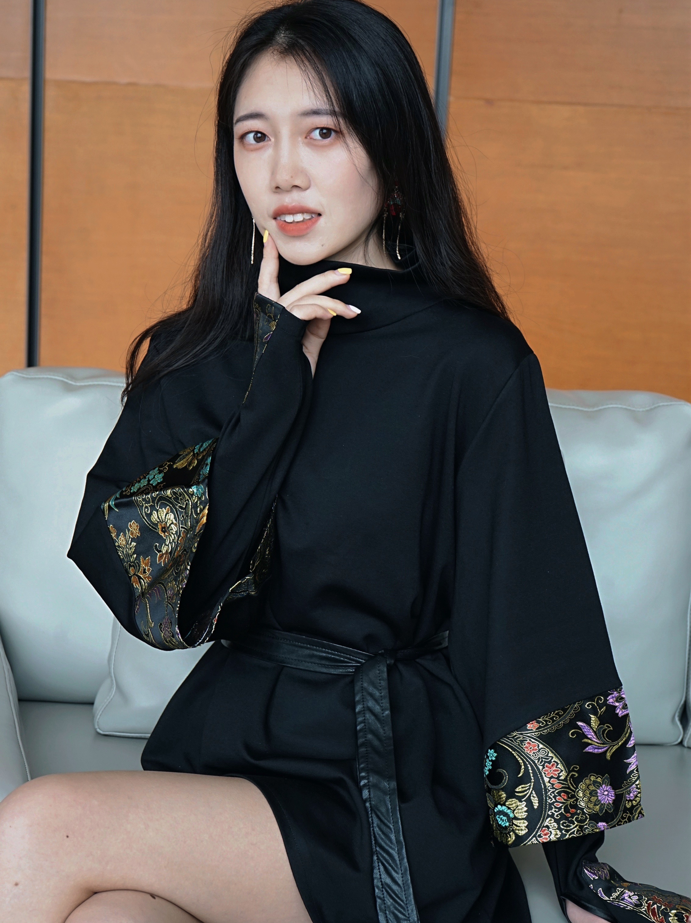 東家复古原创设计女装,她家的衣服都是我很爱的中国风。这件不规则的刺绣卫衣就是我近期最心水的上衣,看似平常的设计处处透着小心机,设计师真是煞费苦心。衣服很有个性,裁剪独特,不同于常规卫衣的大斜下摆让人眼前一亮,既复古又女人味,日常配一条喇叭裤一双高跟鞋,气质upup。