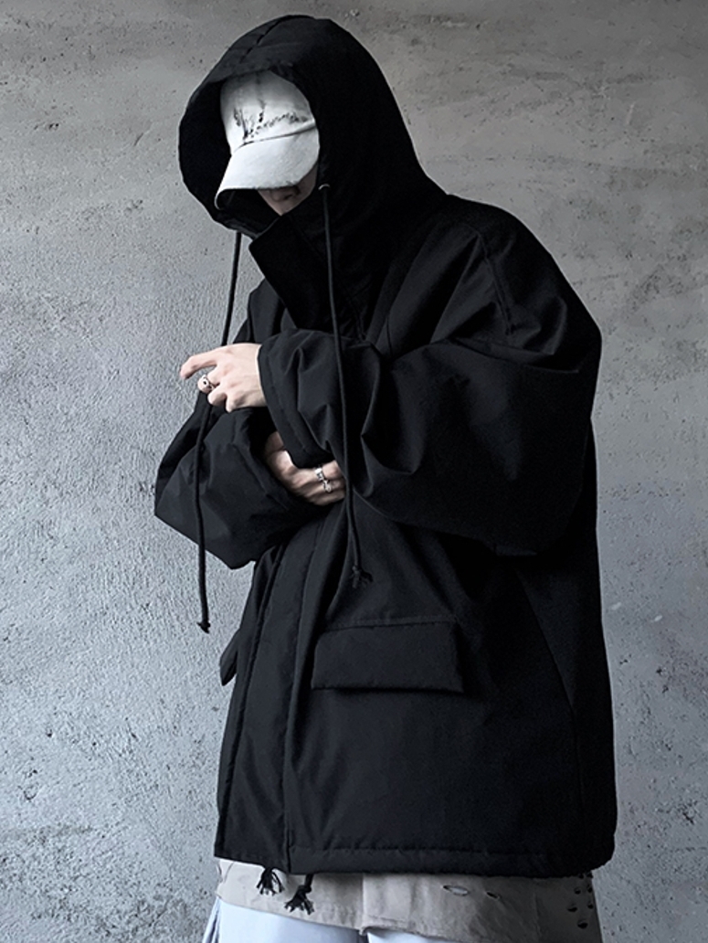 时尚连帽,两侧弹力抽绳可自行调节,梭织面料柔软抗皱,罗纹袖口锁住温度,黑色带来硬朗帅气感觉,很百搭哦。
