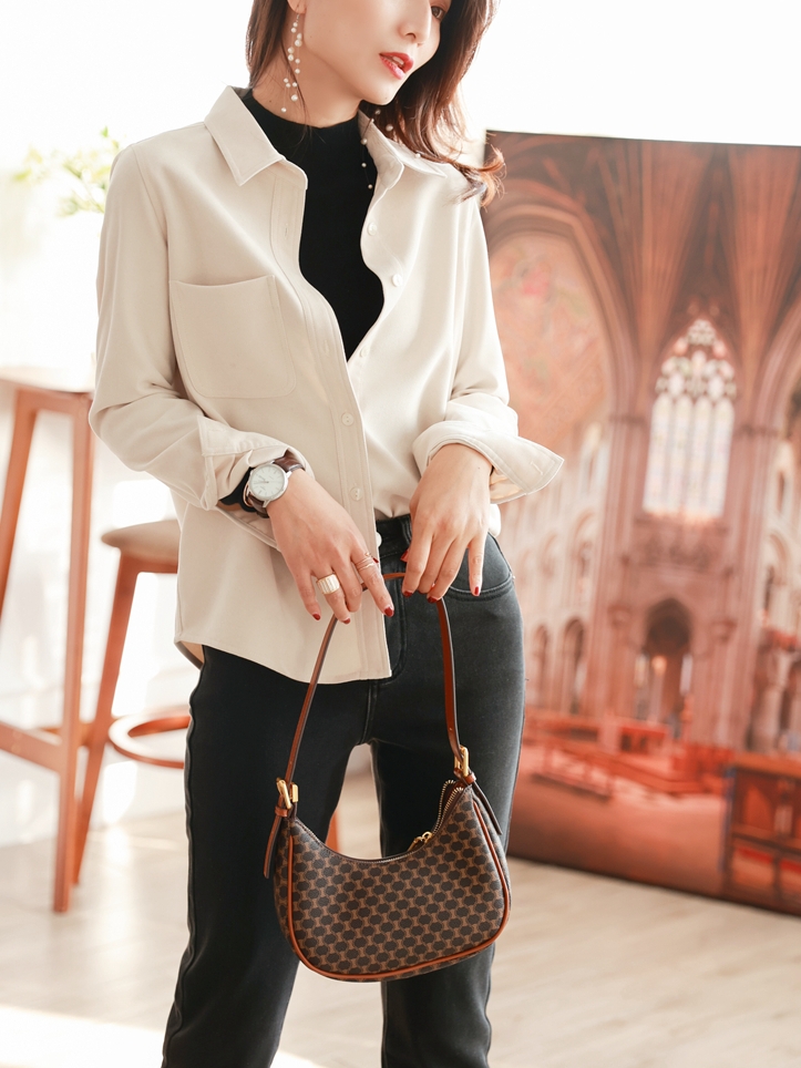 简约的高腰设计,搭配上修身的版型,上身显瘦又显高。