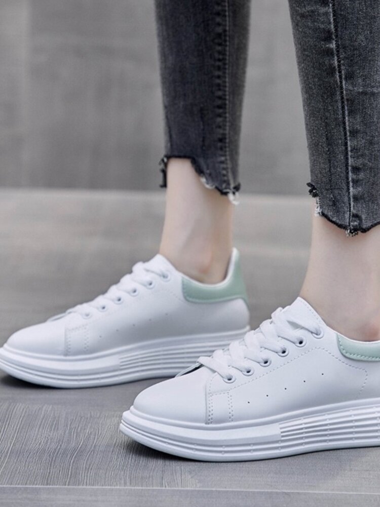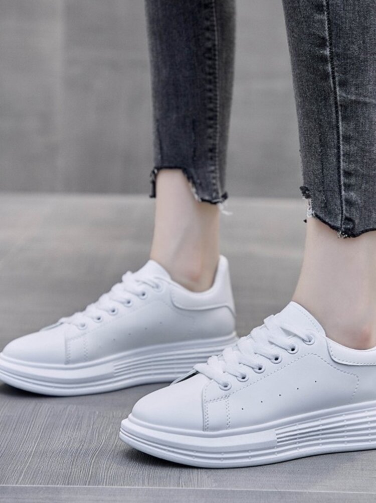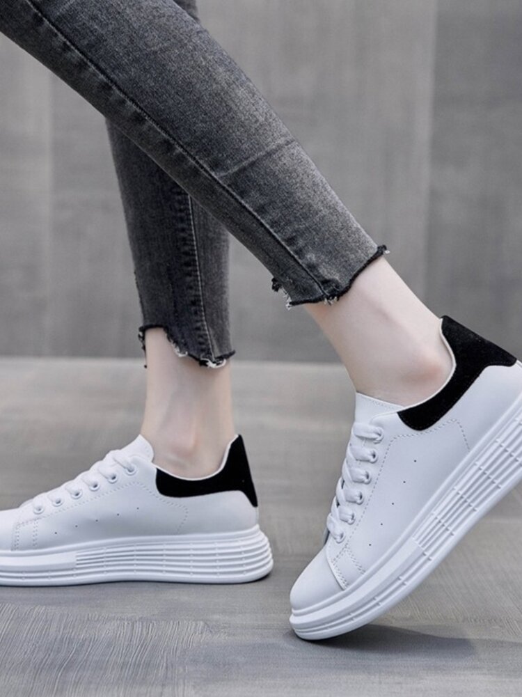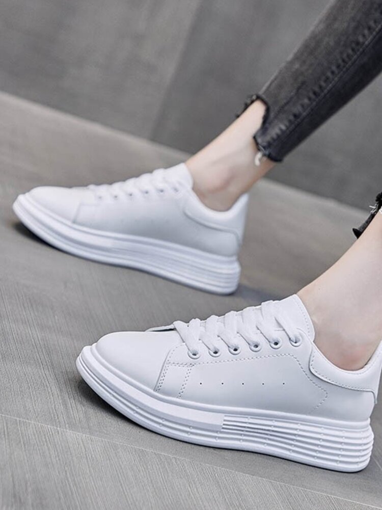 一双穿着特别时尚简约小白鞋,时尚潮流PU鞋面,柔软内里,约3CM高厚底耐磨橡胶鞋底,整体设计特别时髦,穿上脚不仅时尚休闲,还特别显高,挺让人喜欢的一双鞋。