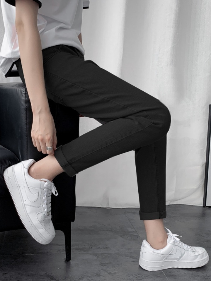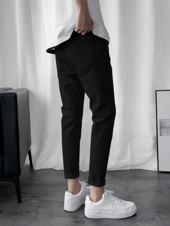 韩版小直筒九分裤牛仔裤,简约的纯白色大身简洁大气,更显潮男的干练时尚之气。舒适的中腰设计结合九分裤的剪裁轻松的穿出了欧巴大长腿的效果。舒适的棉纤混纺面料弹力无束缚行动自如。