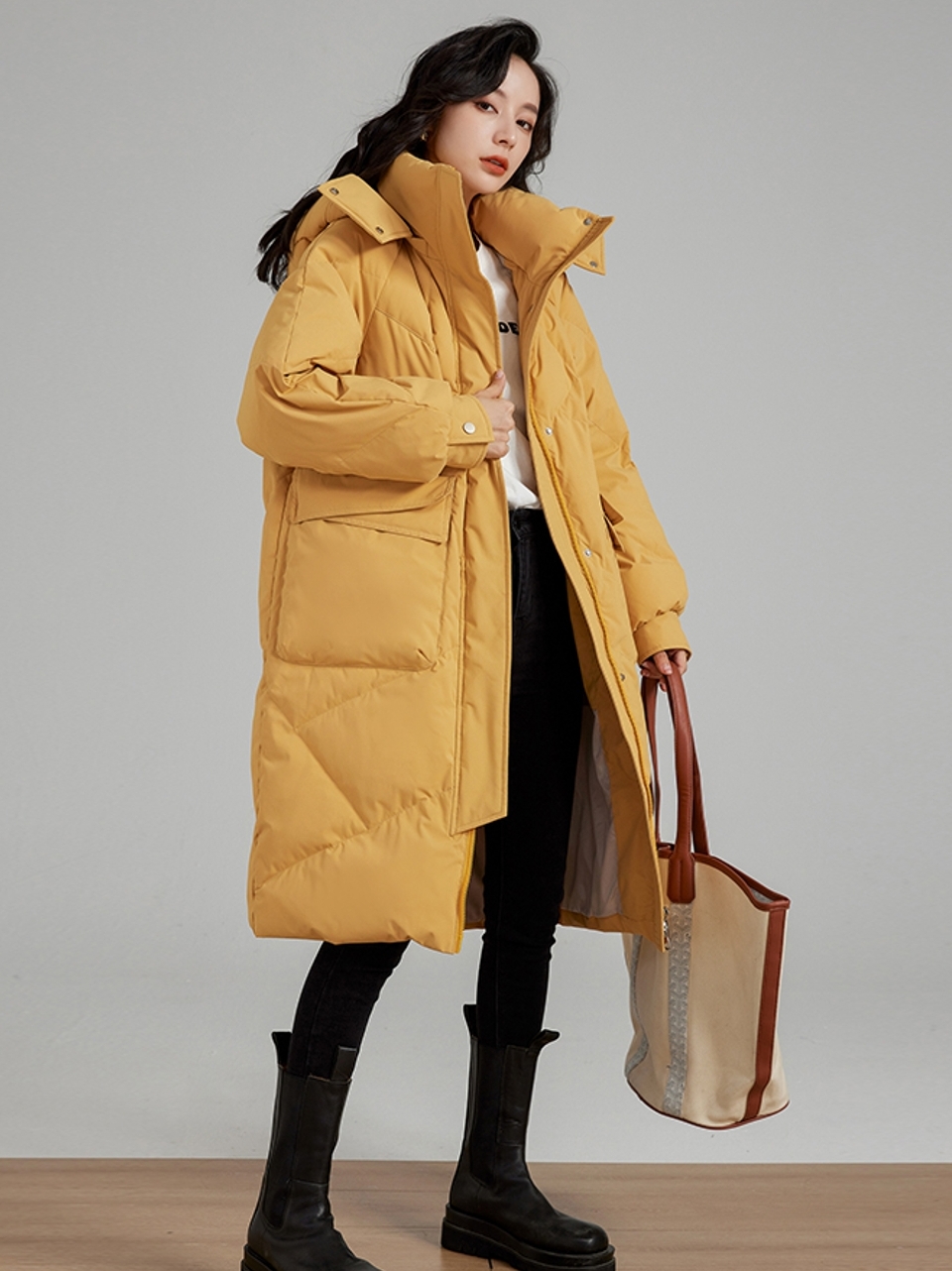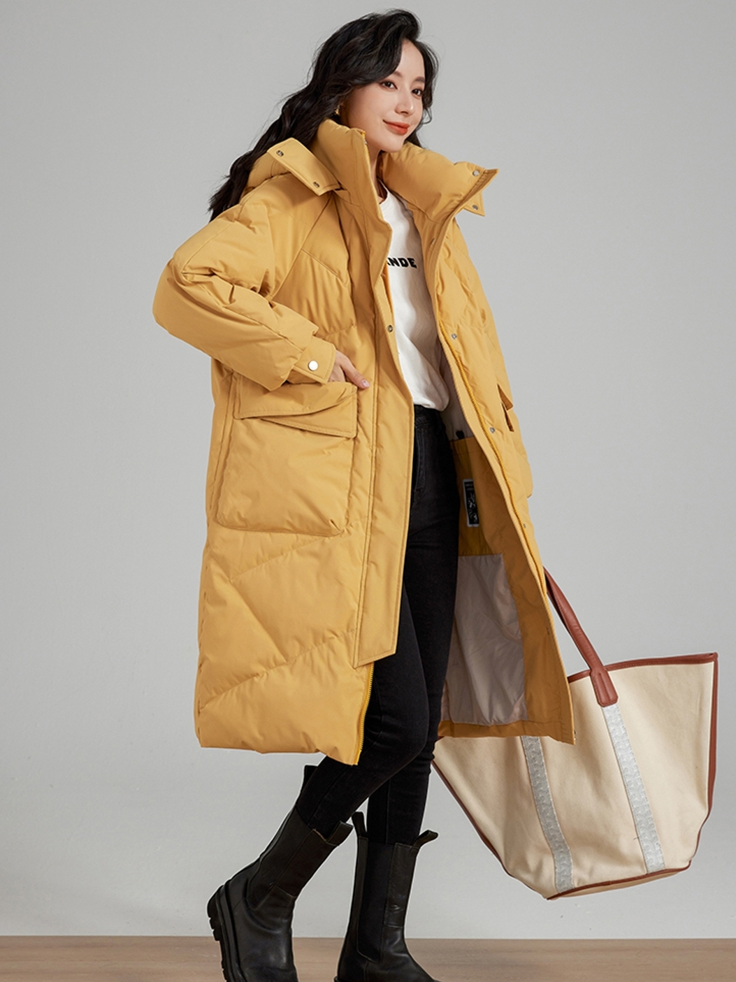 羽绒服选用了优质的面料,精致的裁剪技术,拼线细腻平整,颜色均匀。袖口的设计,凸显手臂的纤细度。精致的口袋设计,打破了整体造型感带来的单调性。