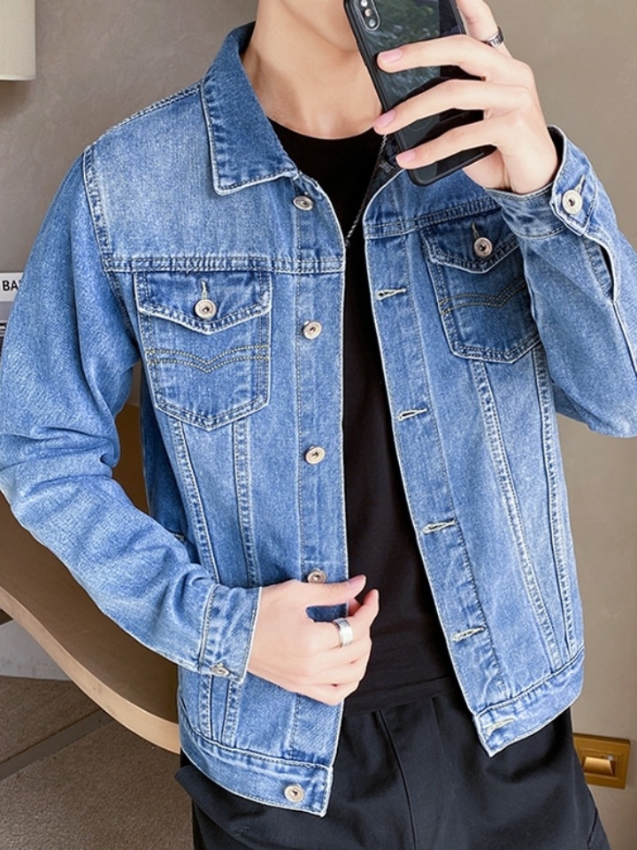 秋季男人牛仔外套帅气出街搭配,新颖的拼接撞色,时尚精致图案,个性不羁,