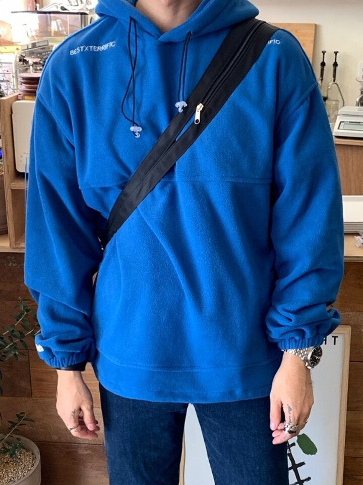 简单的设计理念,宽松的卫衣版型,遮肉显瘦的落肩袖,防风保暖的半高领,搭配牛筋的收口袖子,尽显休闲的学院风。是早秋必不可少的一件单品。