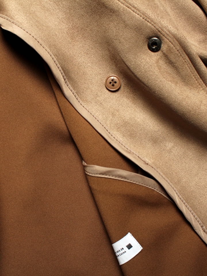 细腻柔软的仿兔毛拼接麂皮面料展现出内柔外刚的曼妙美感,非常的保暖优雅,温暖的驼色高雅大气,微茧型廓形自然显瘦,独特的双层袖管设计立体美观,时尚吸睛。