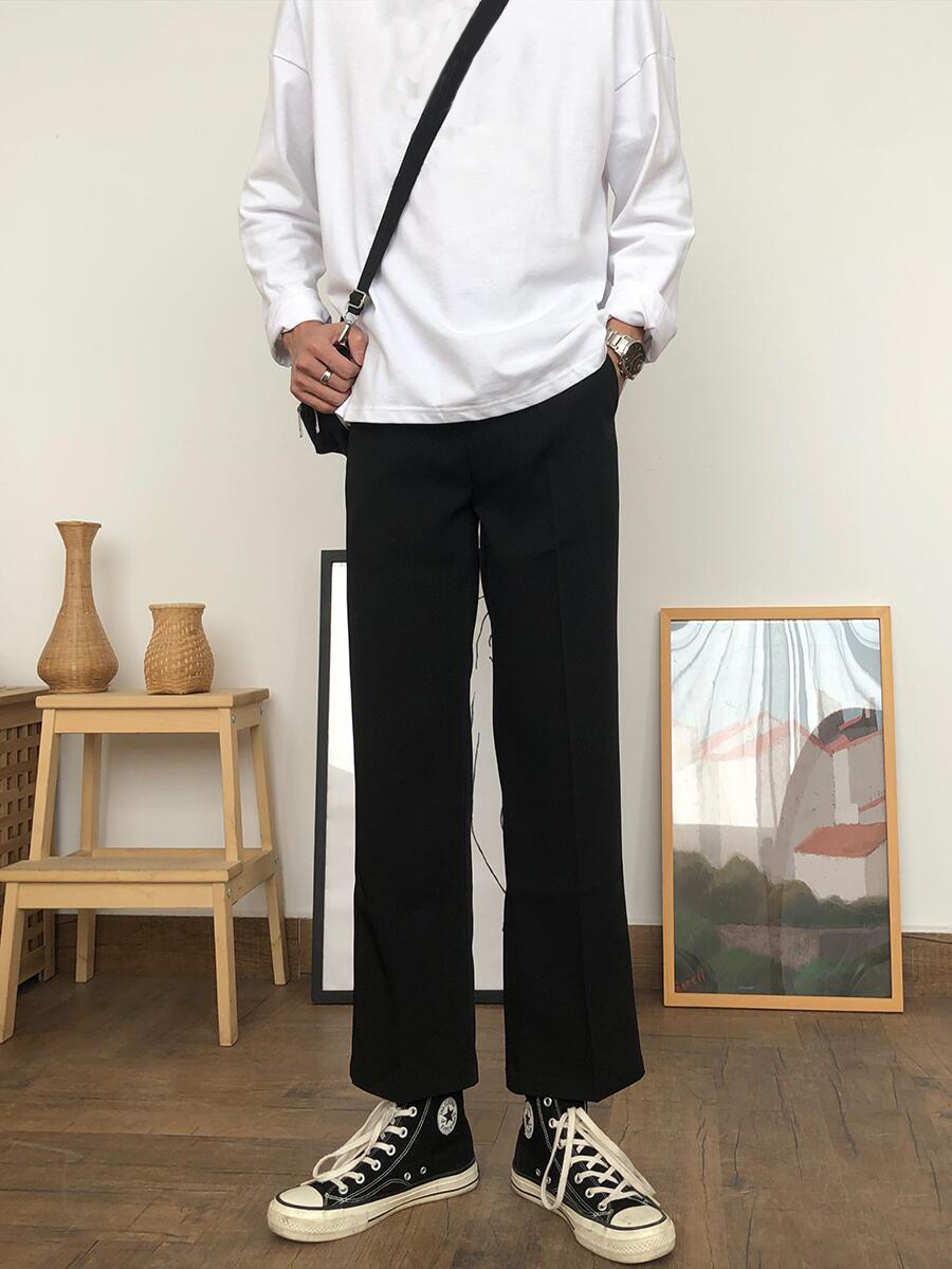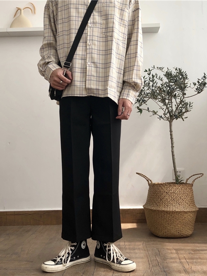 裤脚口与膝盖处一样宽,裤管挺直,所以有整齐、稳重之感。能遮盖腿形上的缺陷,完美修饰腿型,让腿部曲线更直更显长, 不管是高个子还是小个子,正式场合还是日常休闲穿搭,直筒裤通通都能让你hold住全场。