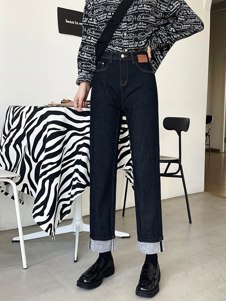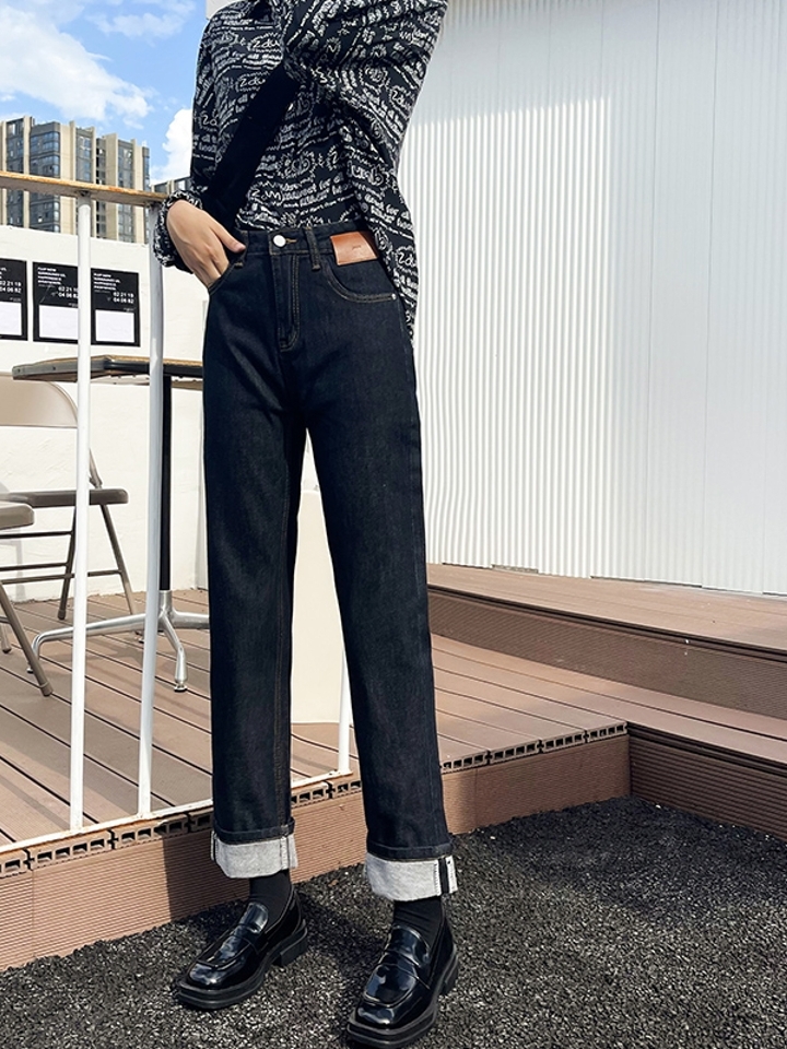简约利落的直筒裤裁剪,包容不完美的腿部线条,视觉上有显瘦的作用。选用了优质的棉牛仔布面料,质地柔软,穿着亲肤舒适性好。