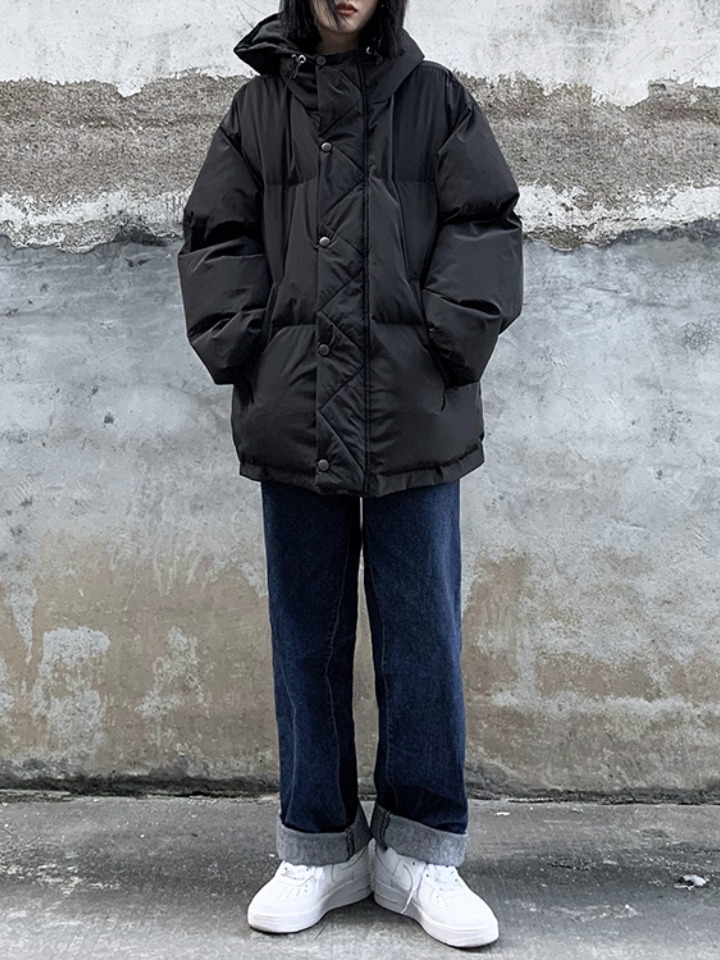 充满休闲风格的这款连帽面包服,衣身采用纯色调设计,所以非常的好搭配,简单穿一条阔腿牛仔裤来搭,不仅能遮住腿部的赘肉,还能彰显优雅干练的气质。