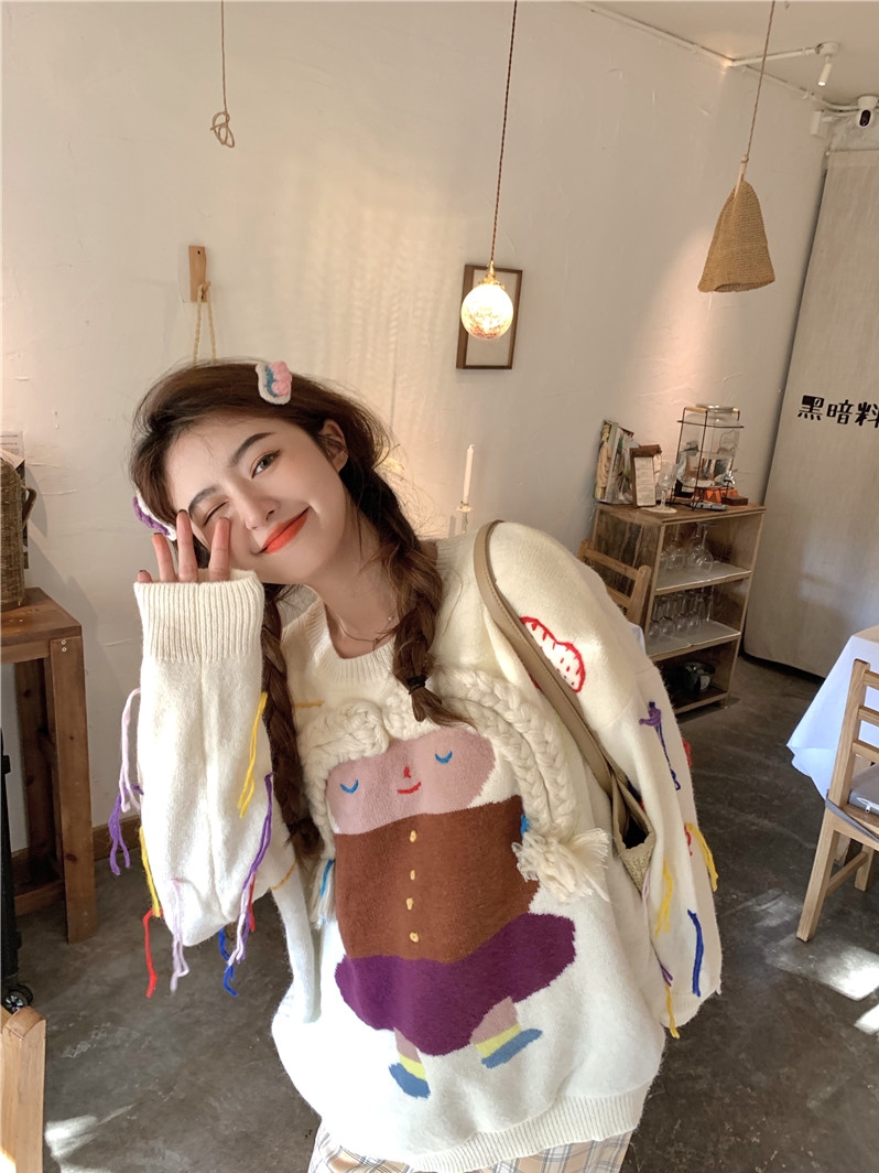 一款甜美风格的流苏针织衫,衣身的版型设计的很宽松,对身材的包容性很好,上身尽显随意慵懒范儿。