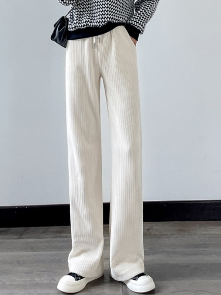 精选灯芯绒面料,秋冬季节穿起来舒适暖和。对称口袋设计,时尚简洁。宽松的阔腿裤型,遮盖不完美的腿型,轻松打造慵懒时尚风。