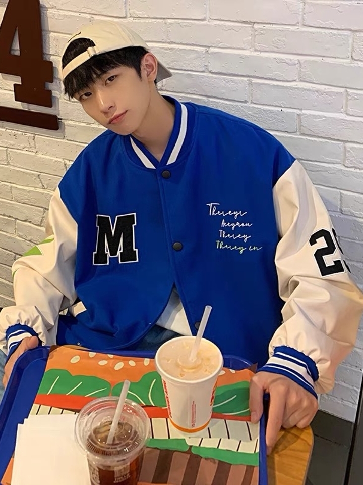 运用拼接设计的这款棒球服,以富有朝气的蓝色与白色糅合而成,加持领口、袖口及下摆处的条纹元素,营造出浓郁的学院风气息。