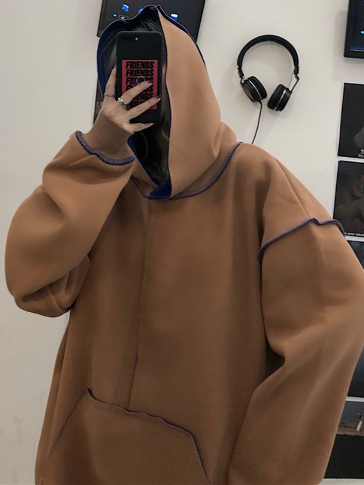 清新俊逸的日系复古连帽加绒卫衣,领口采用新颖的连帽造型,洋溢着满满的青春与活力,衣身立体的口袋设计,简约方便的同时,增加了整件服装的时尚感,搭配印花图案点缀,低调华丽,打造出了一种都市摩登范儿!