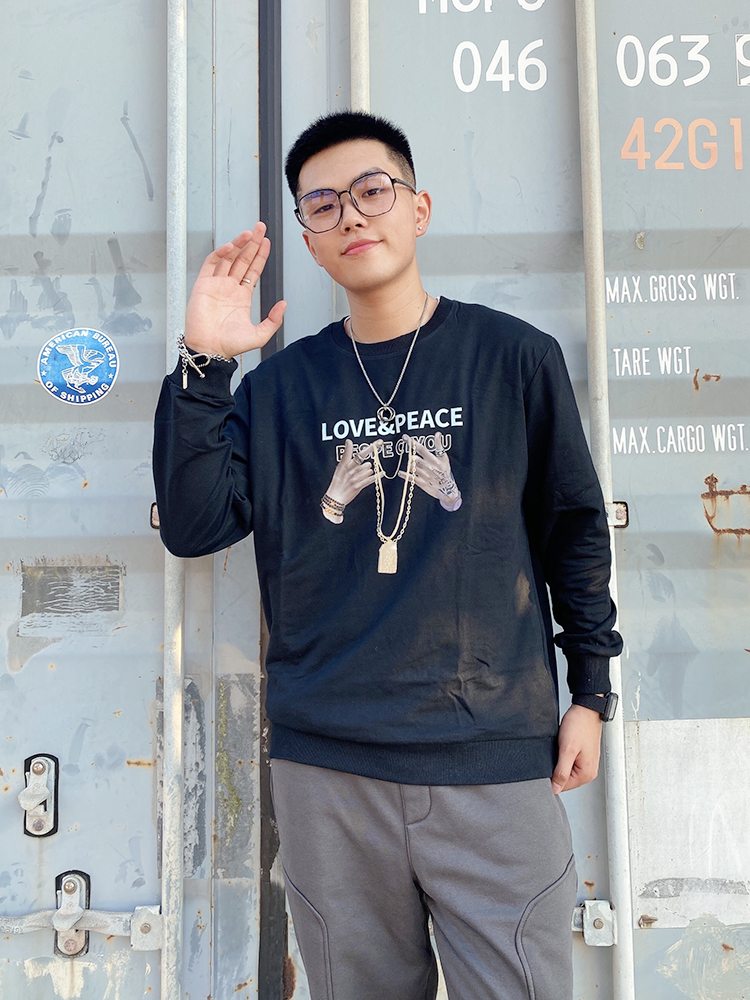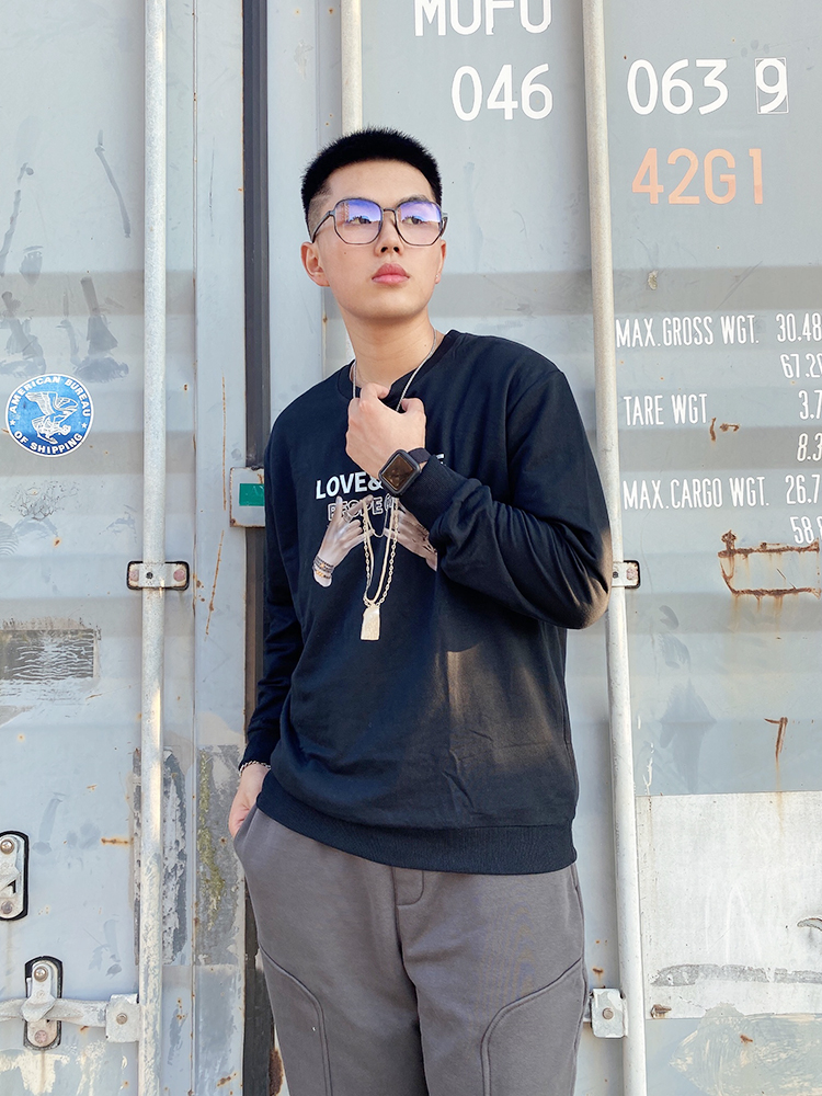 宽松的卫衣可单穿,也可内搭衬衫露出衣领与下摆,胸前佩戴一条配饰项链,一副酷炫、个性张扬的墨镜,加上一顶标志性的鸭舌帽,整体造型嘻哈范儿十足。