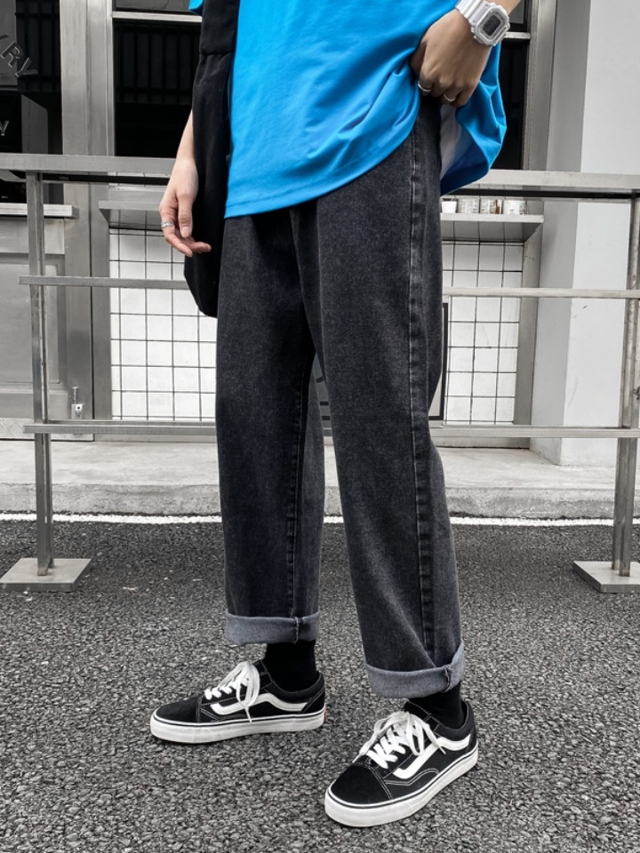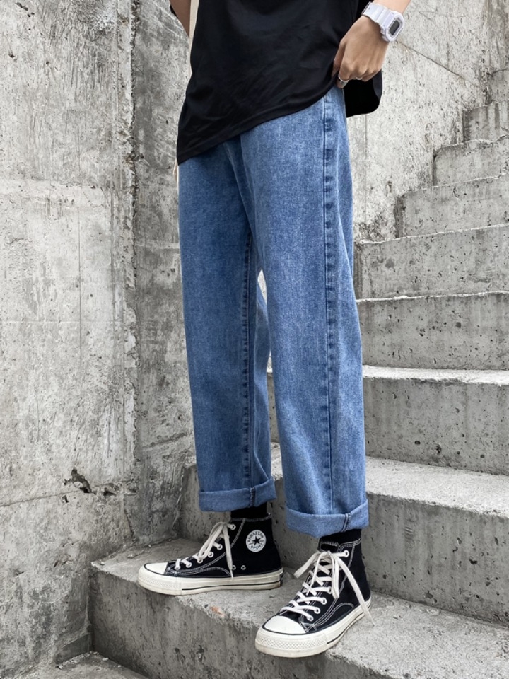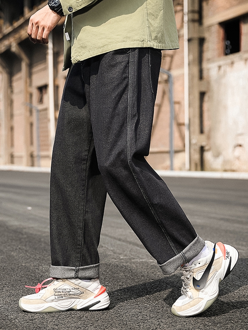 韩版直筒牛仔阔腿裤,能将腿型的缺点隐藏起来,具有修饰腿型的作用,非常显腿直,两侧的白色毛边装饰,打破了单调沉闷的感觉,使其更加耐看,更有魅力,卷边的裤腿,透着一丝随性感,令人无比喜爱。