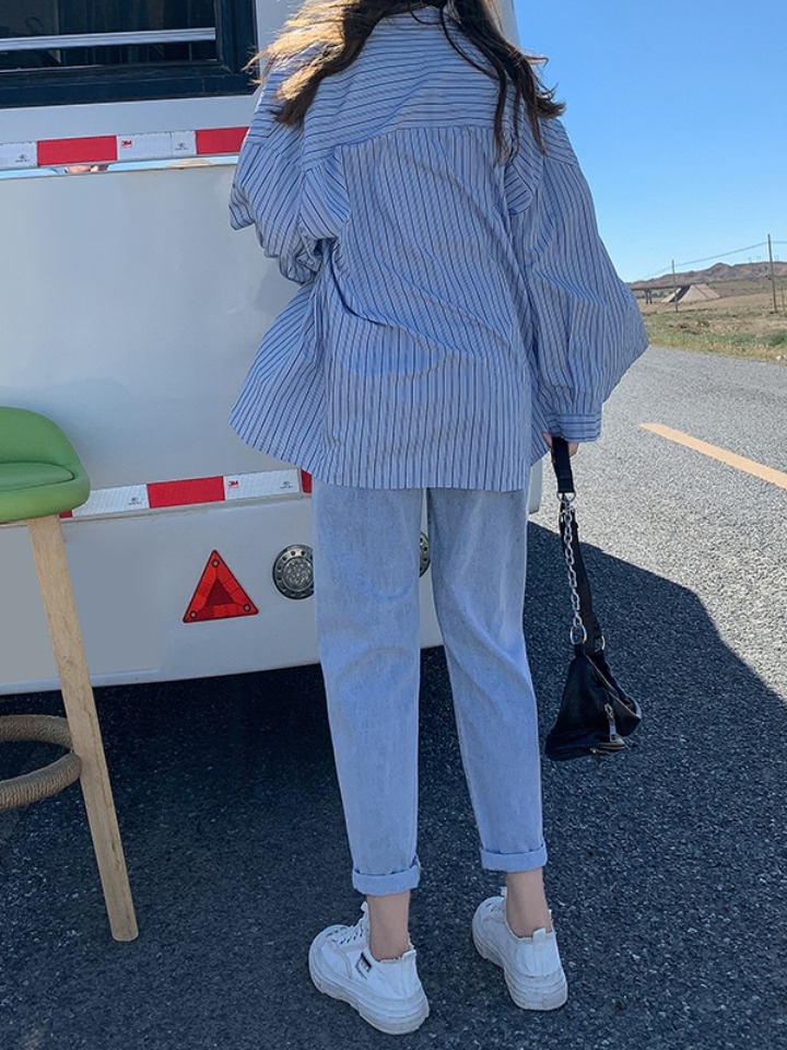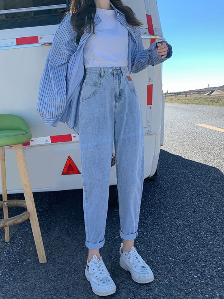 略为高腰直筒的裤型颇有一番复古的味道,中线的设计更加出彩。水洗牛仔蓝时尚百搭, 屁屁的口袋设计更加特别,上身搭配一款休闲的卫衣,尽显个性范。