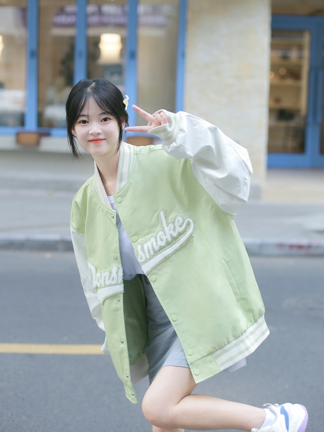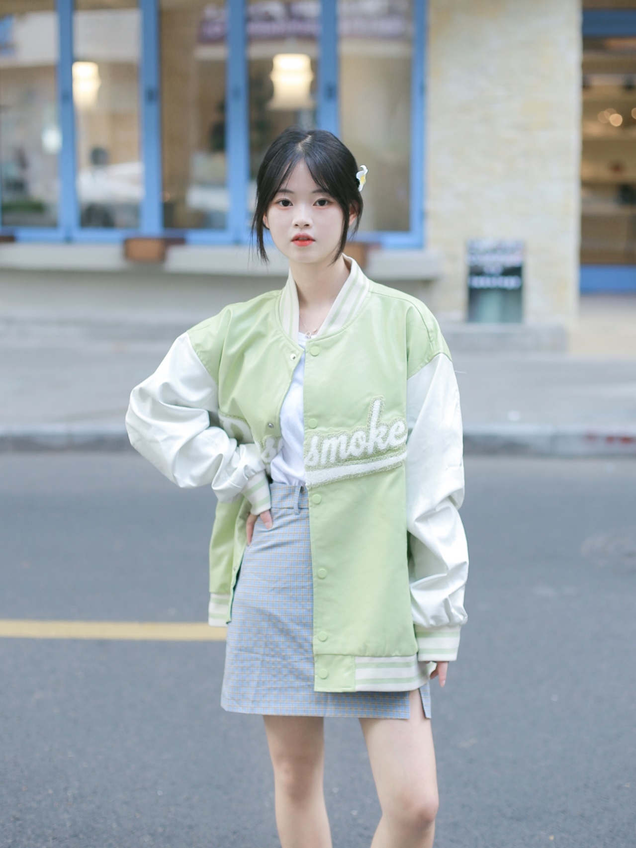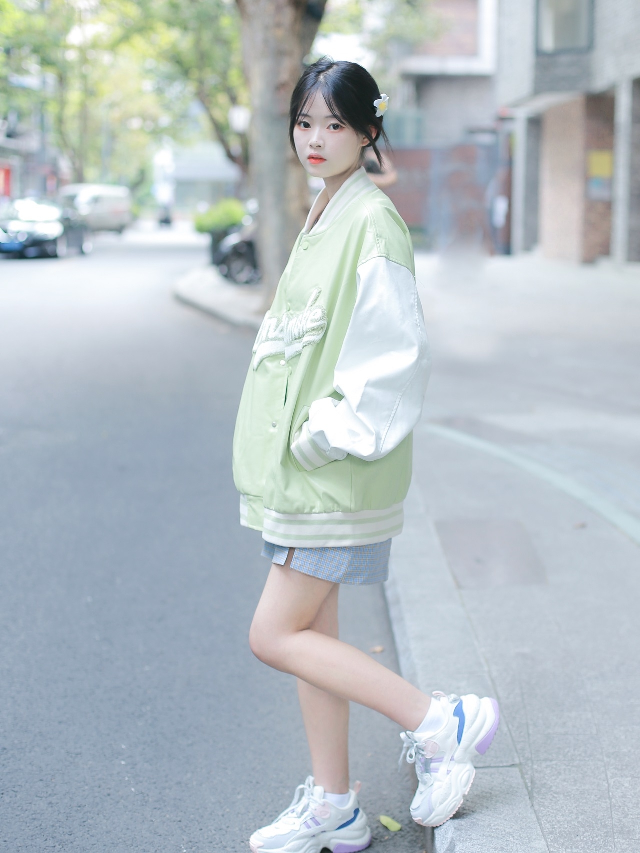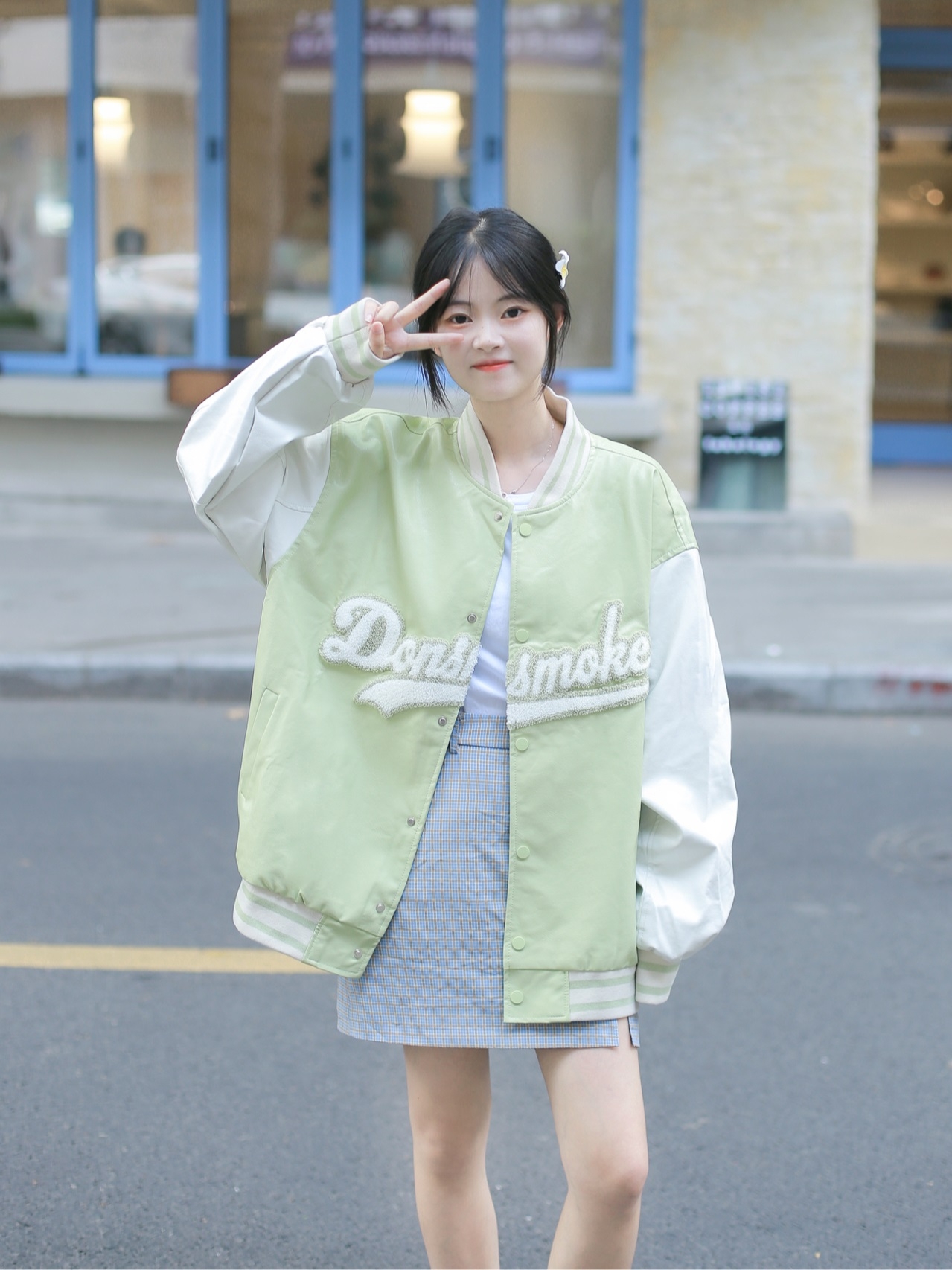 绿色棒球服真的太潮流了吧,绿色真的好温柔呀。