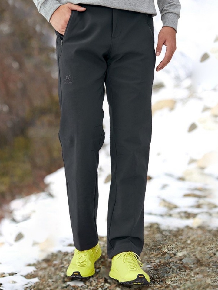 Kailas 户外软壳长裤,双织锦纶背面刷毛面料,富有弹力、保暖、舒适。款式修身立体肩带穿着舒适精神。腰头内贴细绒防刮面料穿着舒适。两侧镭射贴合封闭式拉链插手袋方便储物袋布采用舒适面料设计,保暖舒适的同时排汗透气。