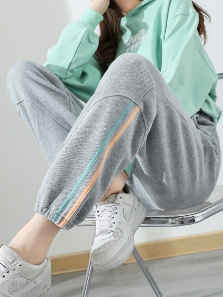 优质的混纺面料,带有自然的纹理感以及具有轻柔细腻的手感,充满了休闲的运动范儿气息,裤腿上两条杠黑白分明吸引眼球。简单的抽绳松紧腰美观大方,休闲时尚。