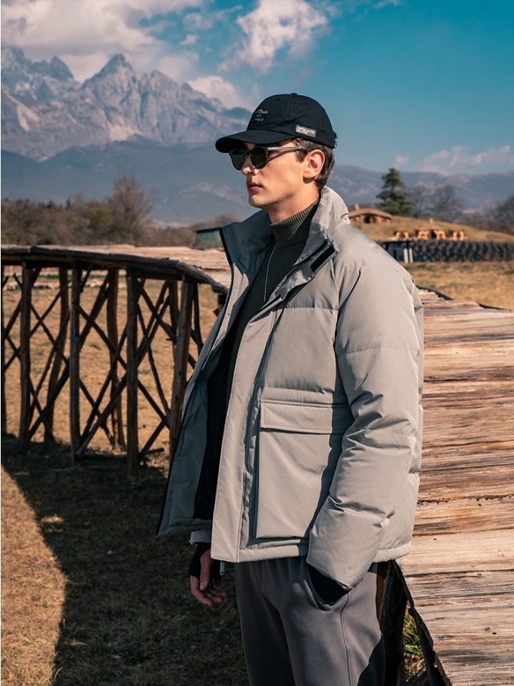 商务休闲风潮的精品男装品牌英爵伦打造的秋冬棉衣外套,柔软厚实的优质面料透过利落有型的夹克款式以及修身的版型设计,使穿搭效果随性帅气而不臃肿,结合罗纹立领的拼接以及条纹绗线的搭配,使衣身实穿不呆板为造型平添一抹运动休闲风。