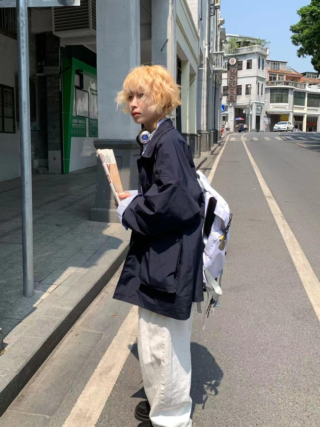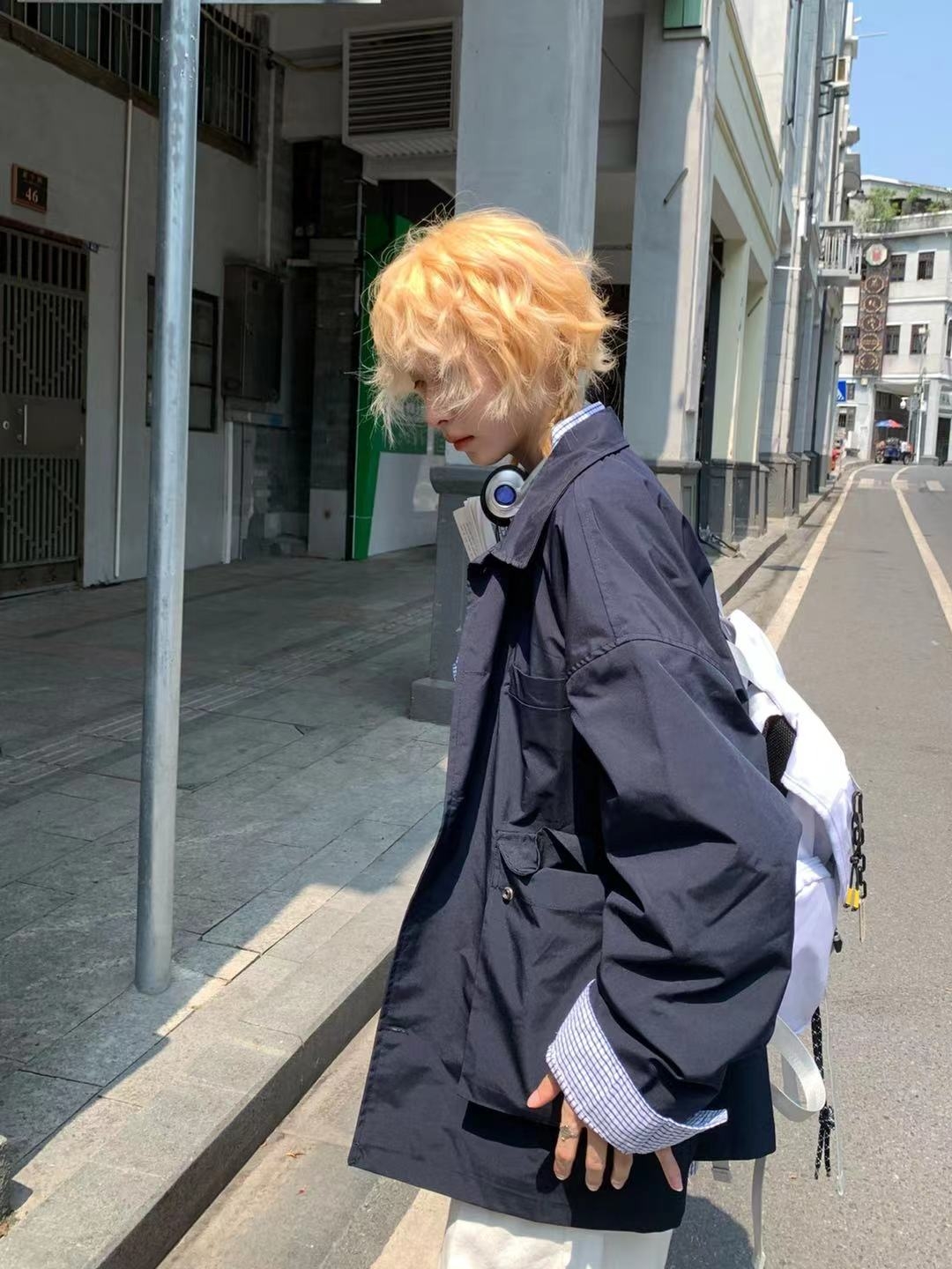 版型有点像西装,但是是工装的那种面料,质量可以,宽松舒适。日系必备外套,挺百搭的,秋天穿刚刚好,不错可以。