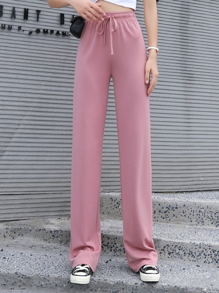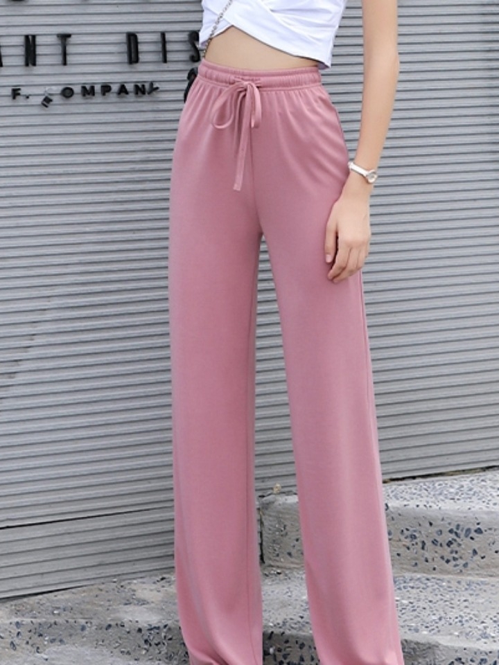 一款冰丝的高腰阔腿裤,冰丝的针织料夏天很是凉快,不吸热也不起球,宽松的版型尽显笔直的大长腿。