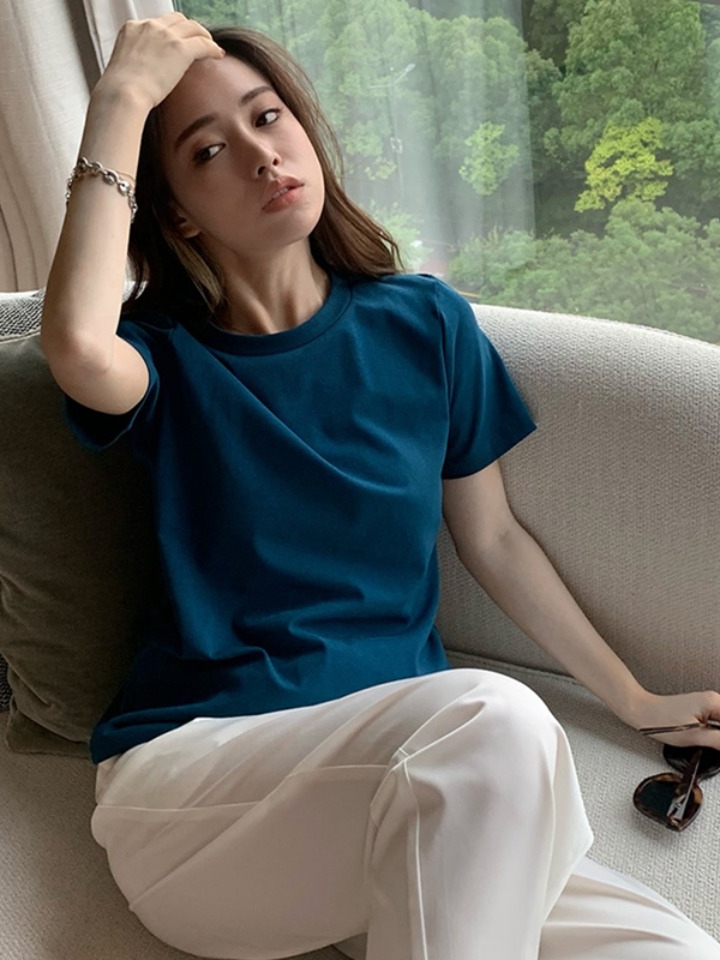 精致圆领设计,充分展现俏丽而不过分,完美的修饰颈部线条,十足减龄,宽松版型,短袖,常规款,上身效果超级清新范儿!