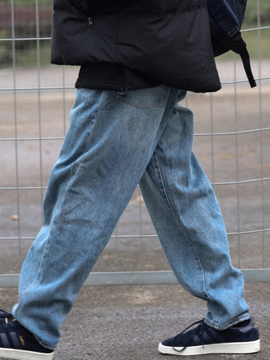 这款牛仔裤所选用的面料有着淡淡的水洗效果,上身非常的出效果,散发复古气息。此外,它的质感十分柔软,穿着触感细腻舒适。