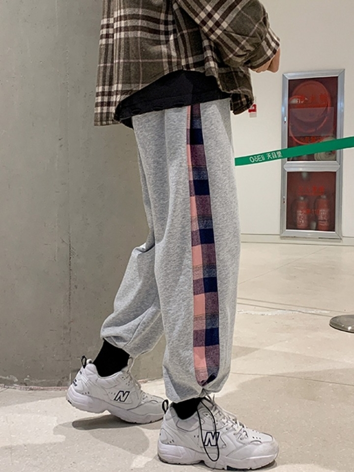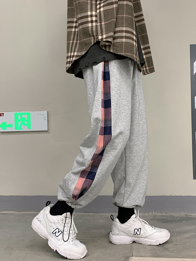 一款很帅气的休闲裤,裤子是街头风设计,撞色格子设计,使它看着更加潮流时尚,日常可以穿出比较时髦潮范的效果。