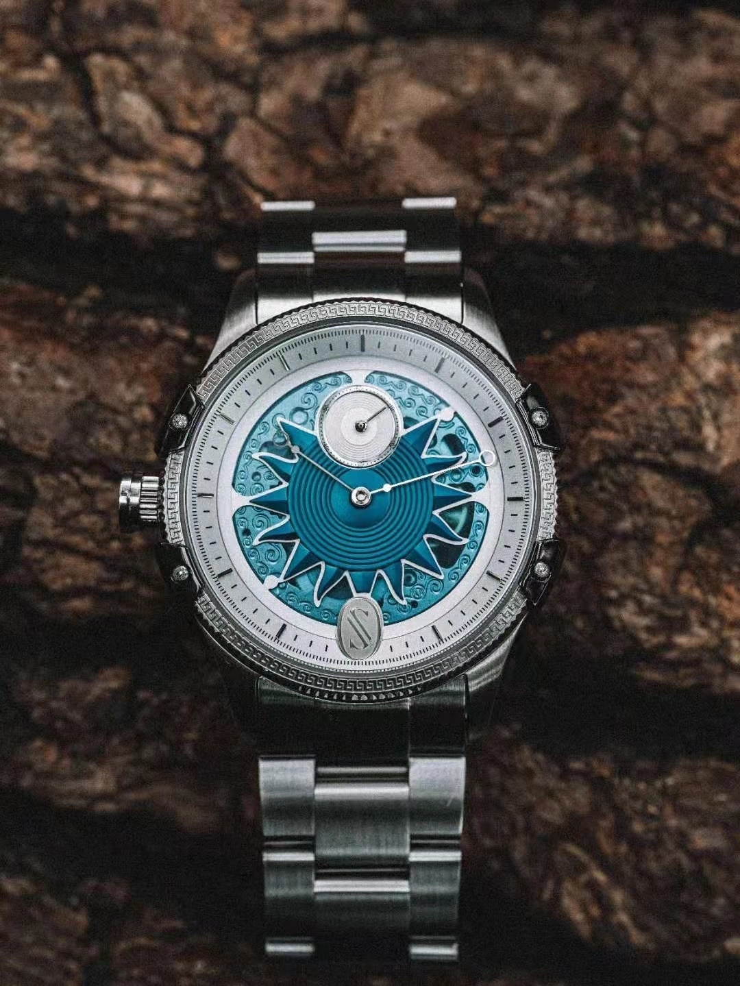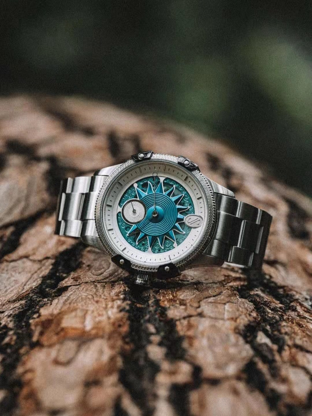 自带时空穿梭感的表盘,能迅速感受到的只有秒针的转动,无序的时空流转需要有序的控制,别出心裁小三针设计,使腕表造型多了一些独特感。