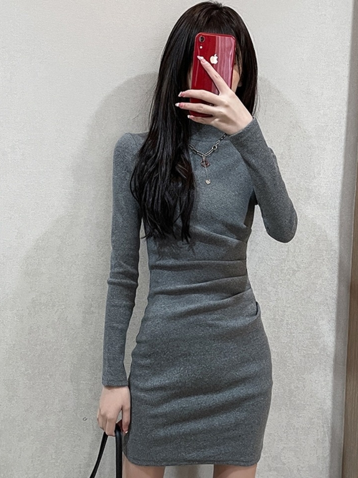 性感v领设计,很好地修饰女性颈部线条,修身版型,显瘦显身材,柔软亲肤针织面料,穿着舒适自在,简约纯色修身连衣裙。