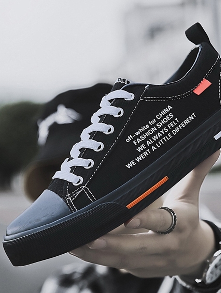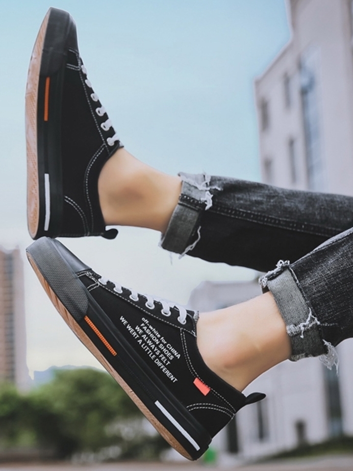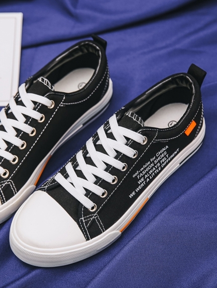 本款男士板鞋甄选优质帆布面料,透气吸汗,倍感舒适穿着;简约经典的韩版板鞋款型,完美结合时尚与经典;更有鞋身大面积撞色印花元素,营造炫酷动感,