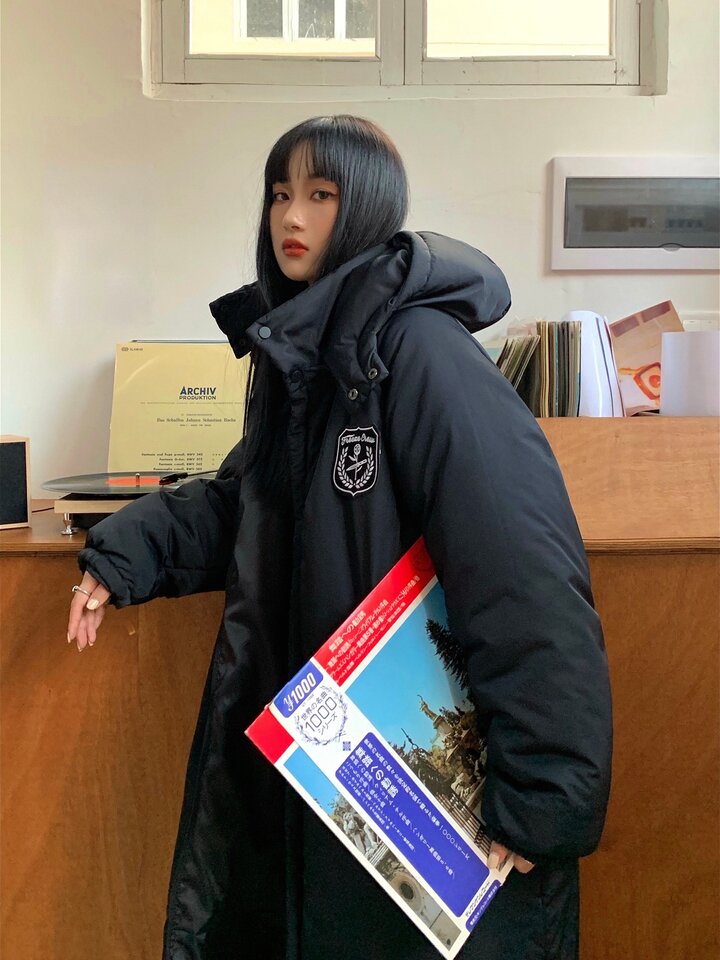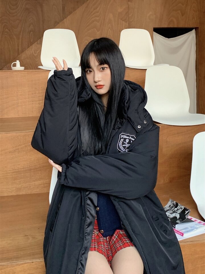质感极好的纯黑色羽绒面料舒适保暖,可拆卸连帽贴心实用,极简中长款修身廓形轻松告别冬季臃肿,秀出纤细苗条好身材。