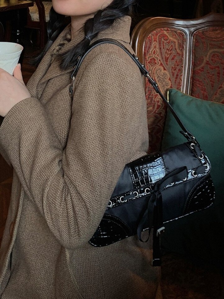 肩带部分很长是金属和皮质缠绕而成,简单的包身,高质感的皮革处理,干净利落的线条及色彩,没有过多的装饰,有一点点复古情怀。