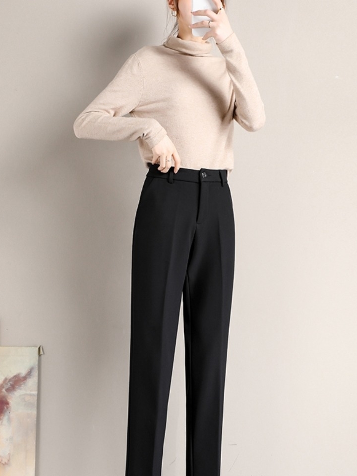 小脚的哈伦版型上宽下窄的视觉感,将显瘦与显高完美呈现出来,腰部带着抽绳的设计感,休闲又大气,西装裤版型不管是作为日常休闲还是通勤穿搭都是可以的。