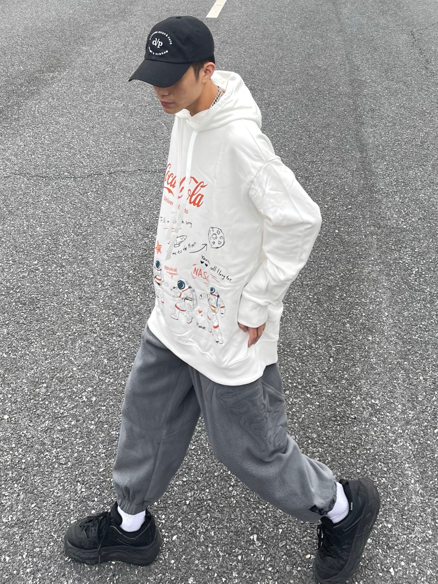 很百搭的黑色卫衣,印花质感很好,面料上身也挺舒服的,版型宽松很好穿。穿了一天感觉还不错,不粘毛,图案拍照也上镜,再冷点可以当内搭。