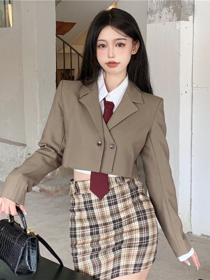 简洁干练的时尚都市西装套装,干练的翻领,修身短款的小外套,都能勾勒出你纤细性感的曲线