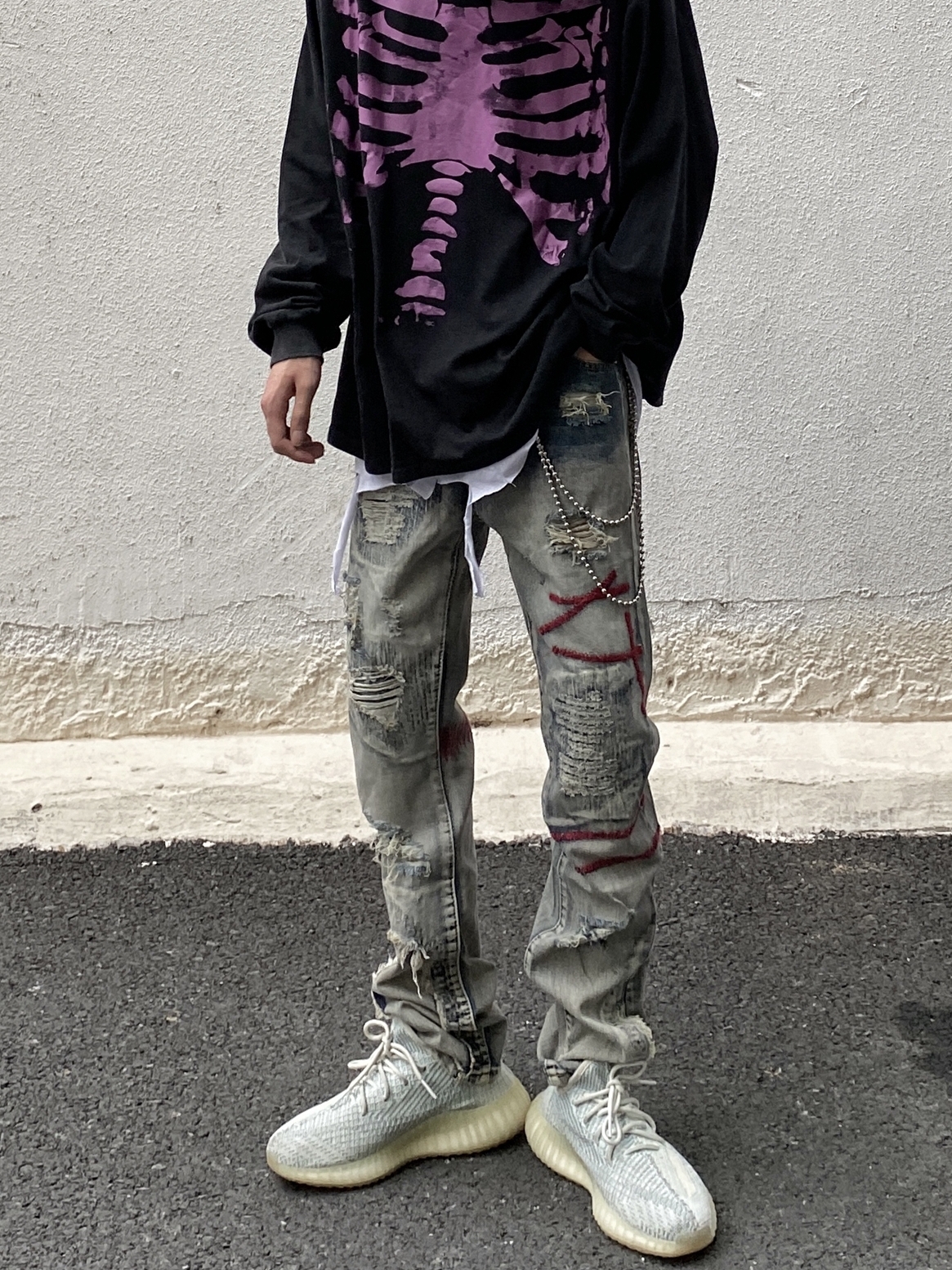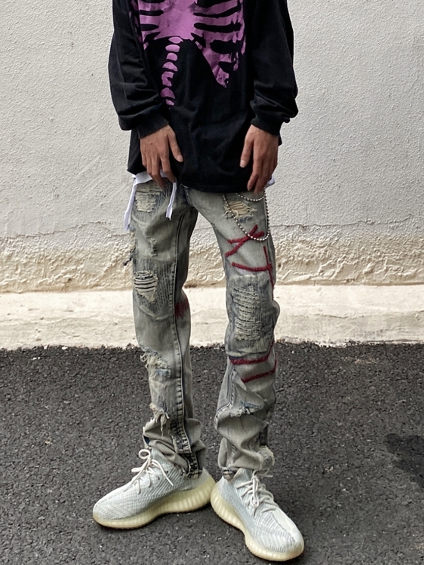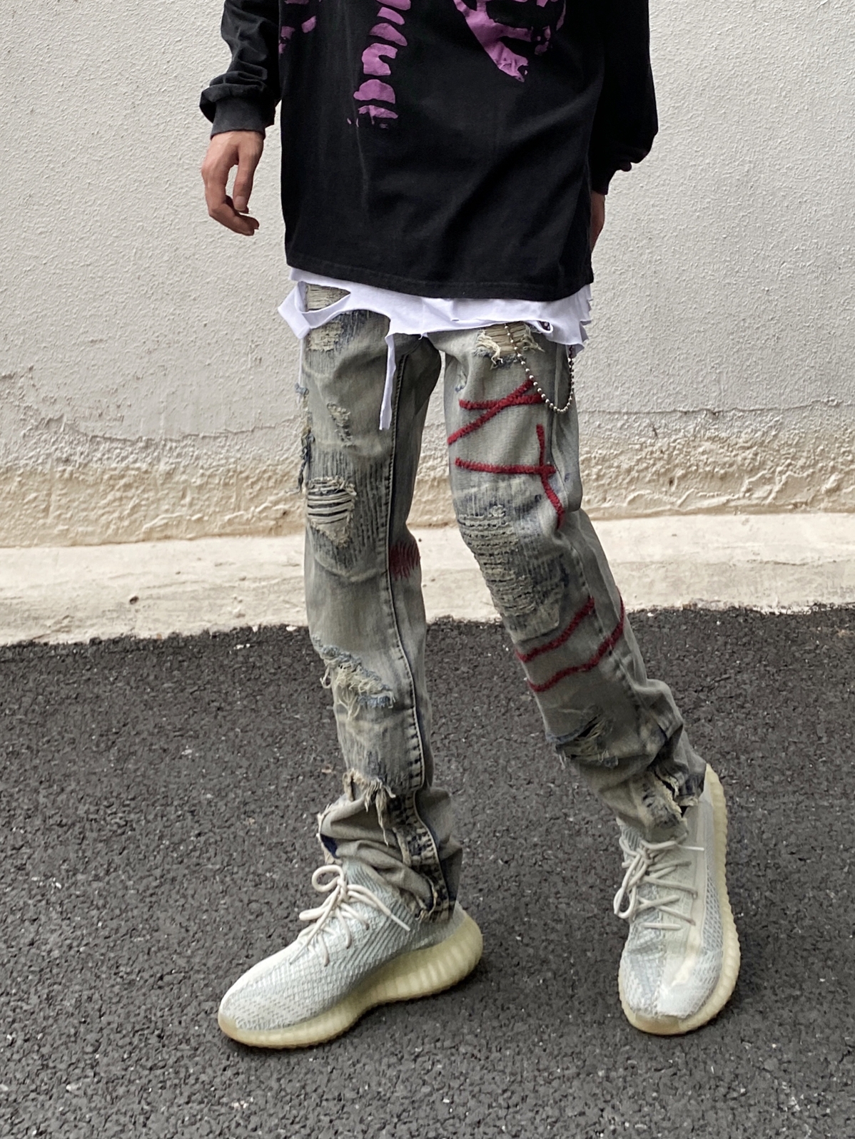 这是一款经典街头嘻哈休闲风格的裤装,略微宽松的裤型,包容性极强,能够很好的修饰腿型,破洞的元素,体现出不羁的性格。