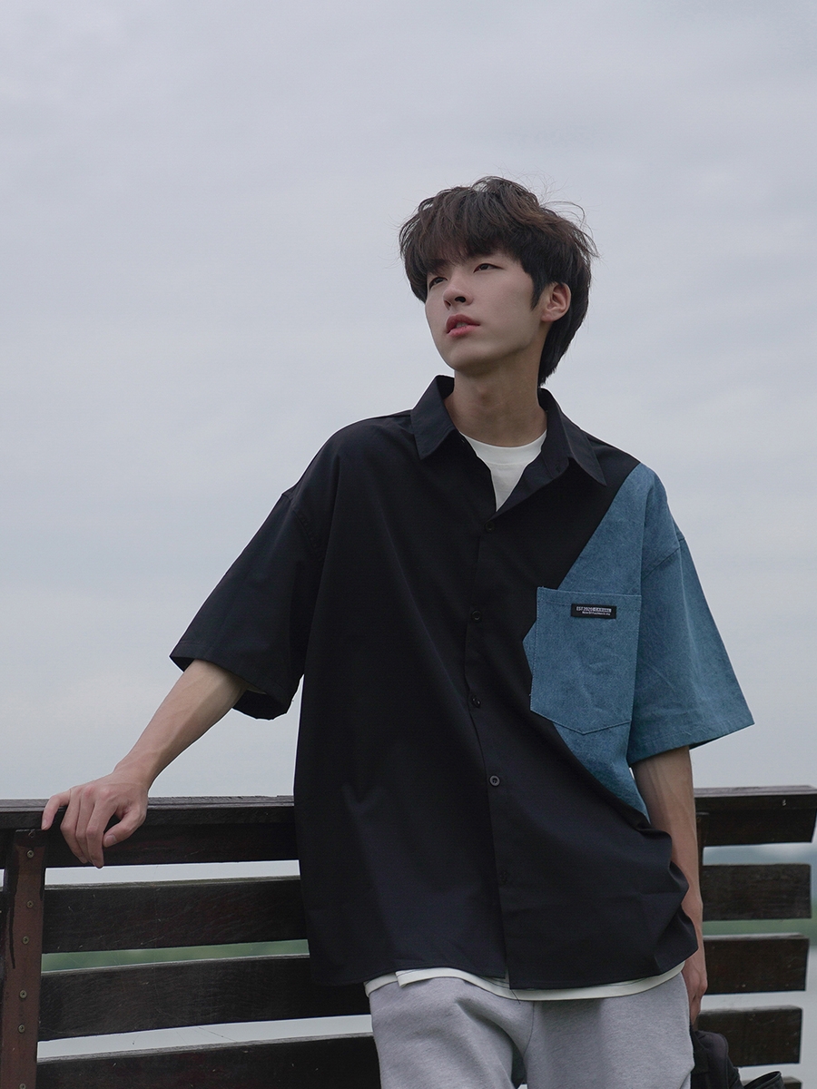 基本款的衬衫版型,整体风格干净简约。口袋处采用了撞色拼接设计,跳脱传统衬衫的呆板单一,让衬衫更显年轻活力。精致袖口,挽起穿着更有型。