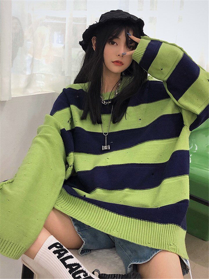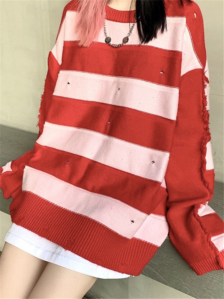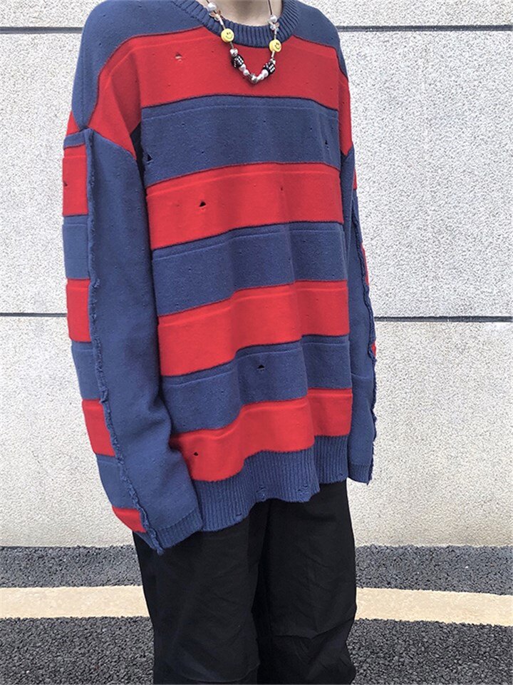 毛衣的设计,时尚感十足,个性破洞设计,时尚潮流,撞色条纹,丰富视觉效果。