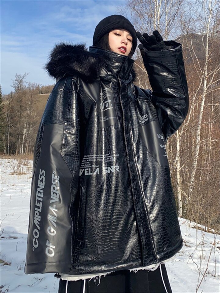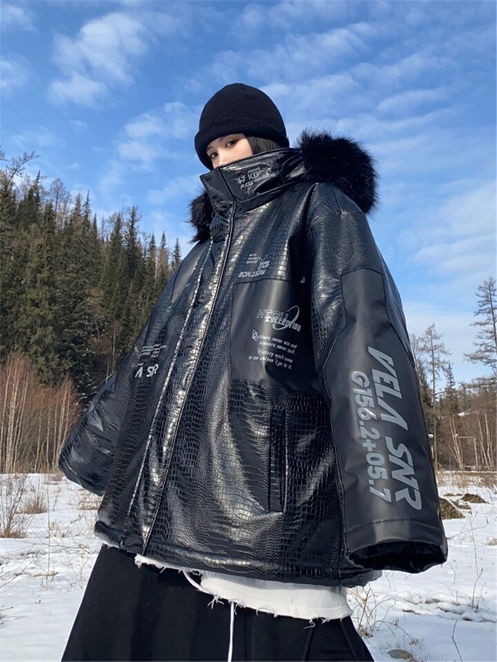 大衣版型设计,宽松舒适,棉服外套,穿着舒适保暖,皮草材质,尽显奢华大气。