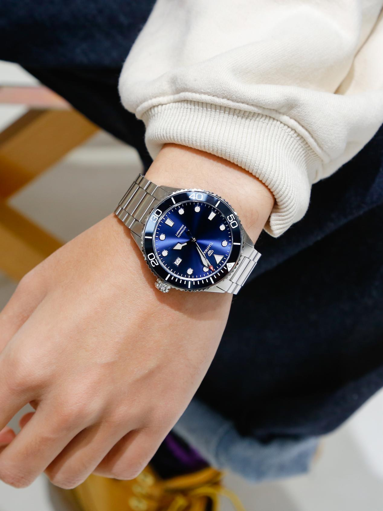 这款表有两百米深度防水,可以说是游泳冲浪的读时小神器。表带贴合手腕,没有束缚感,适合运动。颜值、性能都可的手表,谁能扛得住,反正我不能,收到时心动值都拉满了。蓝色表盘是大热款,身边的朋友也种草了,喜欢的话千万不要错过。