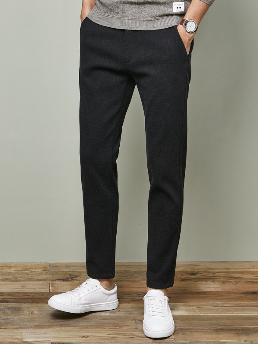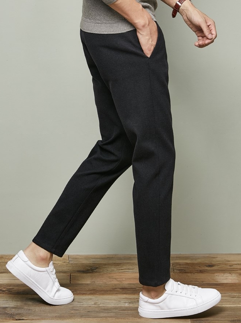 基础版型的小高腰设计,以及简洁利落的一粒扣,让纯色的裤身更显简约的时尚感。刚刚好的九分长度,毛呢面料,温暖舒适。