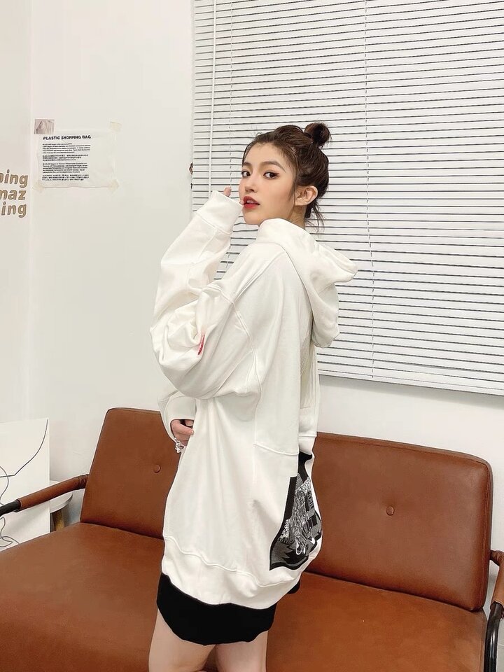 宽松的版型,暗藏遮肉显瘦的小心机,而且不挑身材,任何妹子都可以轻松驾驭。抽绳连帽设计,街头范十足,成为年轻人出街首选。