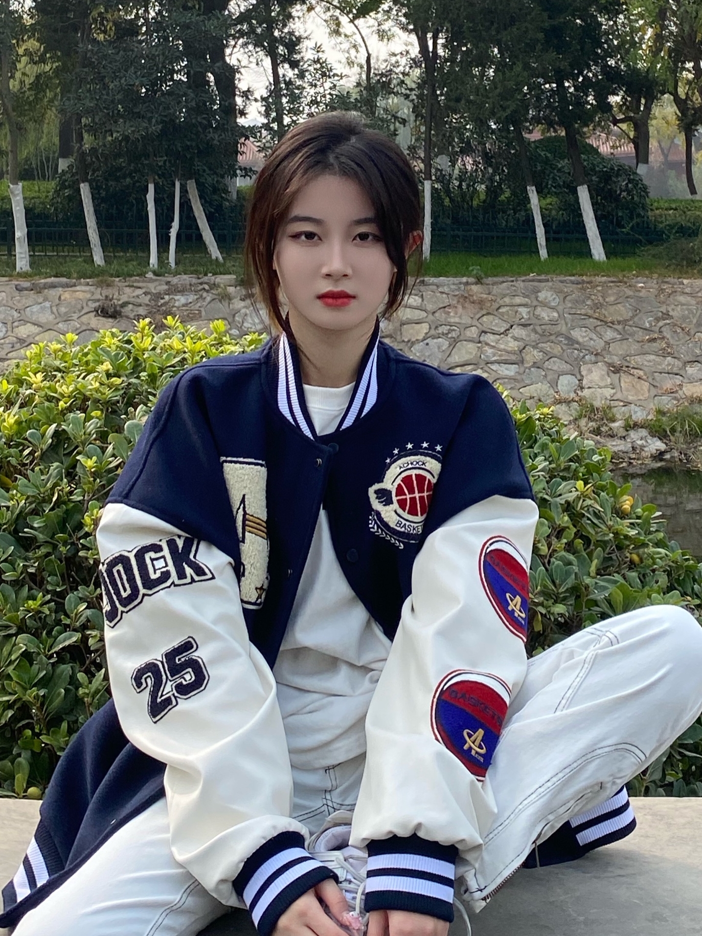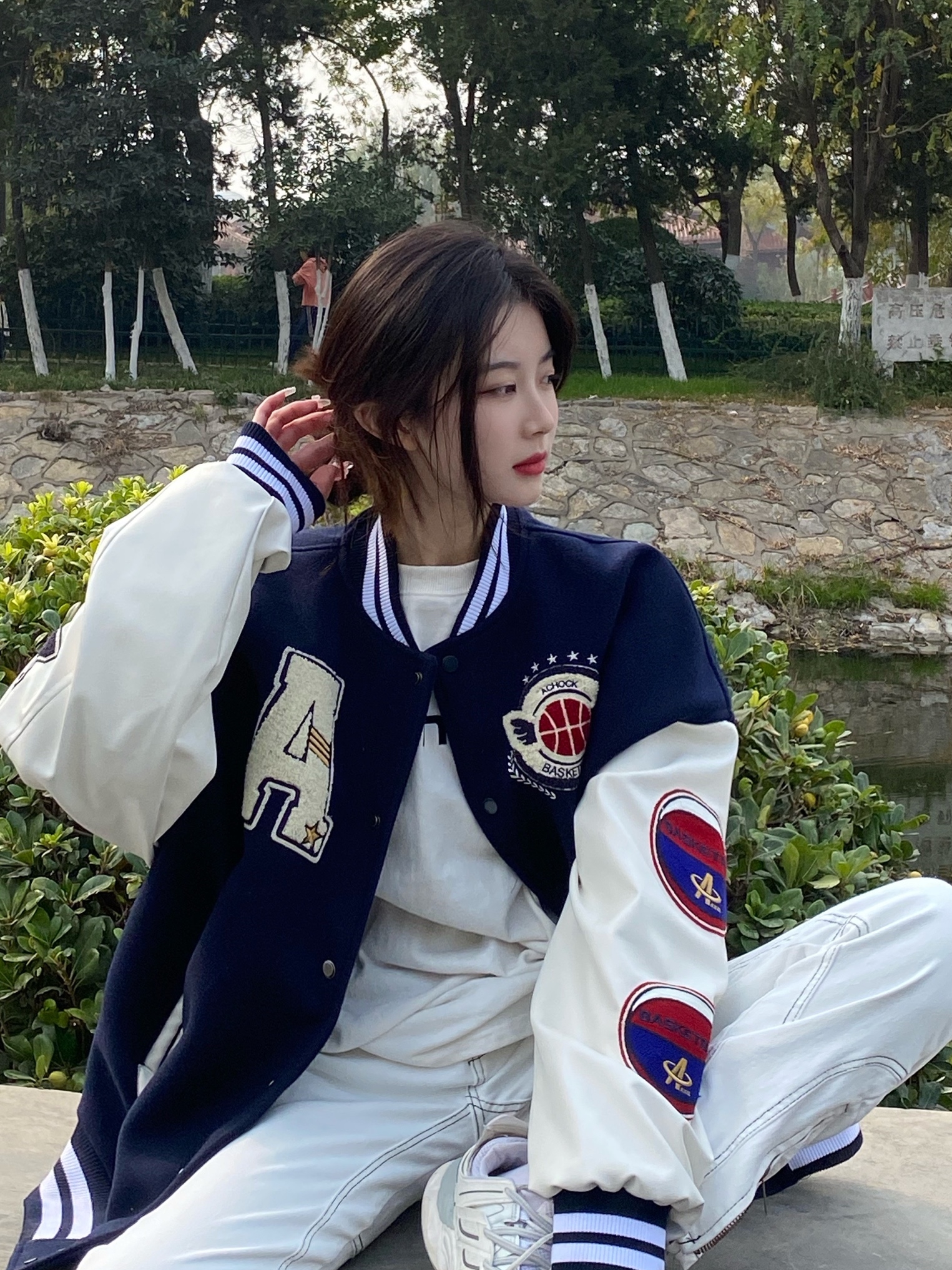 这款棒球服采用纯色设计,简约大气的风格随性洒脱,宽松的版型设计对身材具有极强的包容性,使得上身不挑身材,轻松穿着,舒适自然,棒球领的设计有效修饰颈部曲线,使颈部线条更加修长。毛巾绣的工艺更显棒球服的细节。气质尽显。