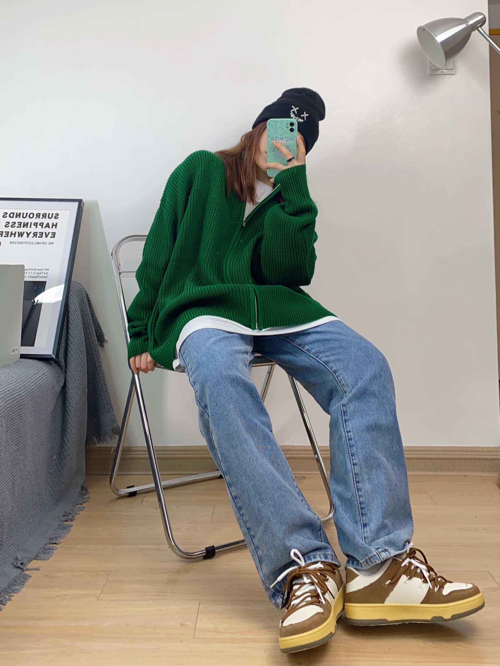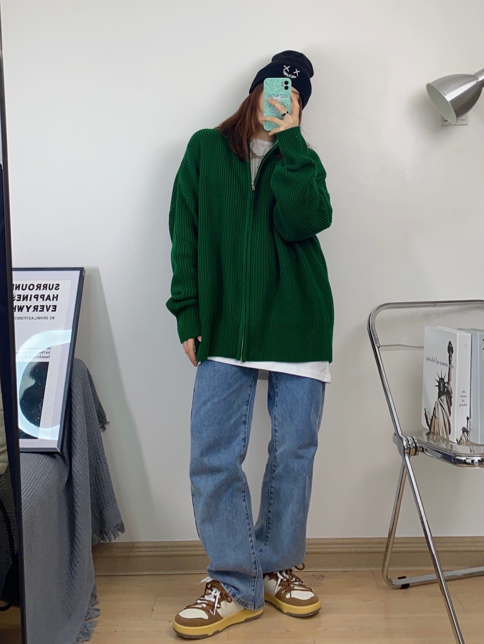 这是一款时尚又能遮盖赘肉的外套,干净利落的剪裁设计,不仅使外套穿搭起来时尚有型,而且还能达到修身显瘦的效果。袖口及下摆处的螺纹加固,可以防止冷风灌入,穿着舒适保暖。门襟处的拉链,实用拉链的开合方式,穿脱方便又能增添干练利落气息。