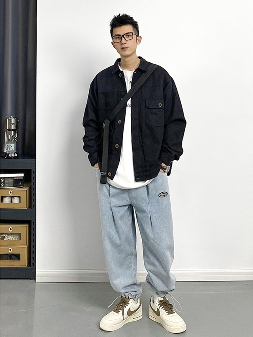 采用小众设计,采用棉质优质面料,质感细腻柔软,上身效果更加舒适。做旧的工艺手法,呈现出复古风的格调。金属纽扣与多口袋的拼接款,赋予了夹克款更加复古的造型,不对称的处理,不易撞衫。