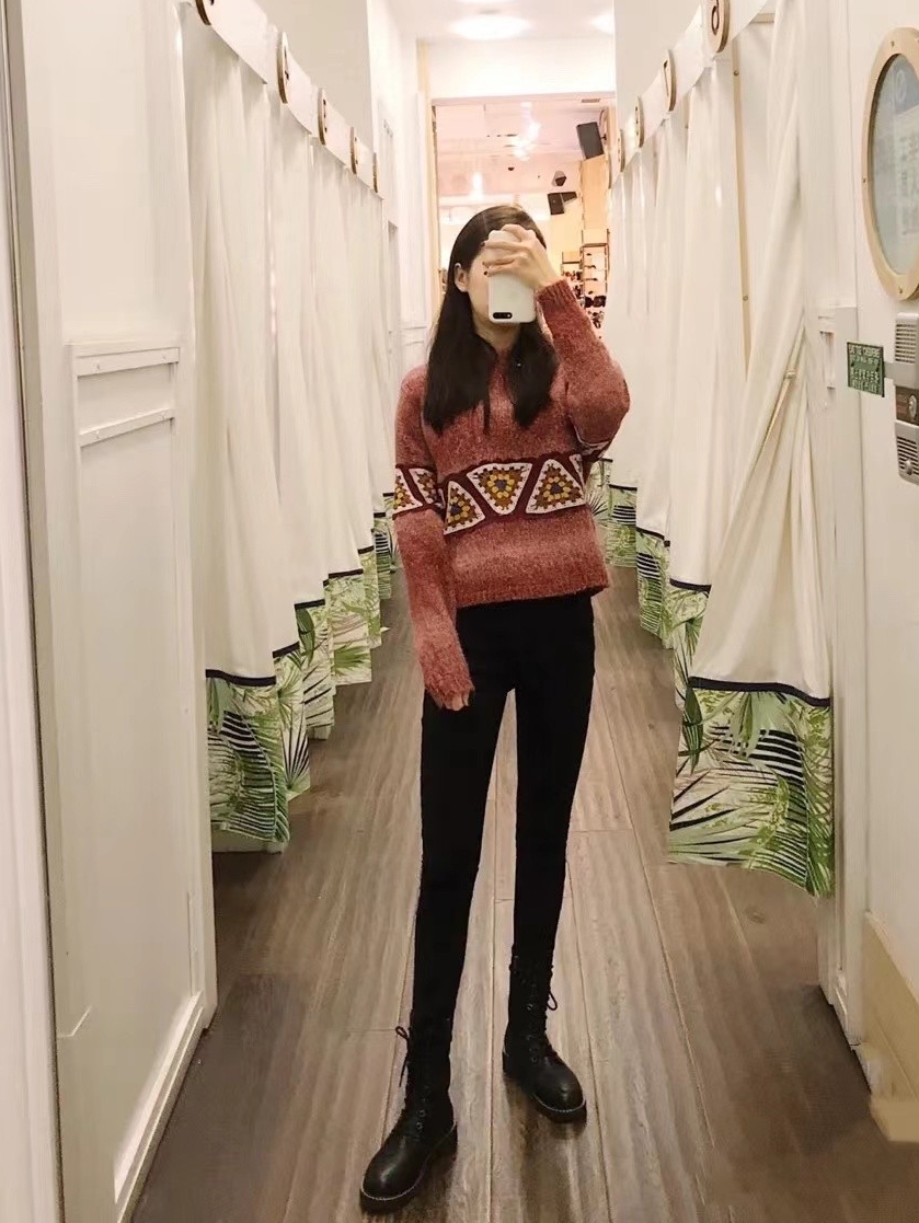 高腰的设计,拉长腿部线条,显瘦效果很好,高腰的版型,很显高挑,修身的剪裁,修饰腿部曲线,上身很有范。