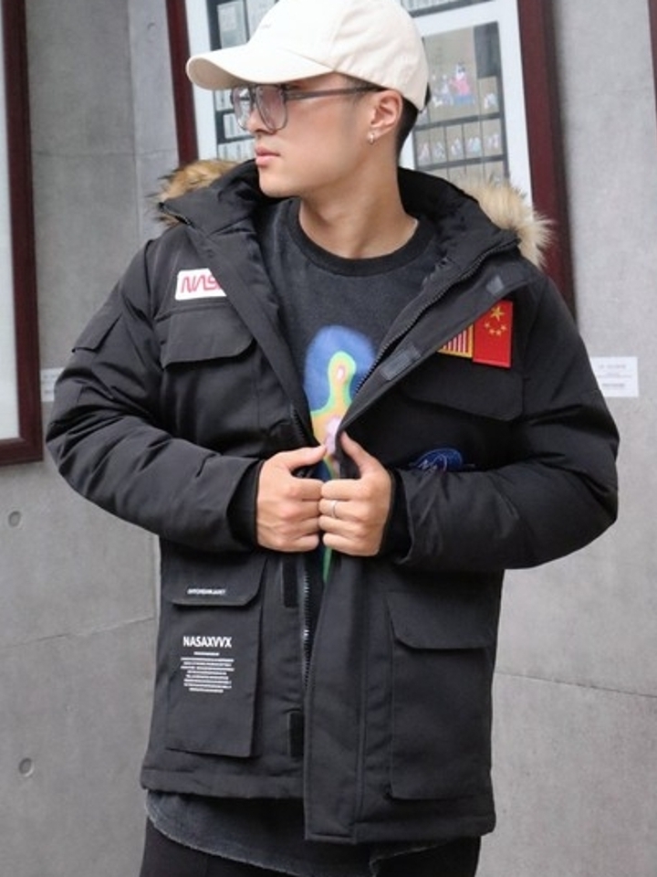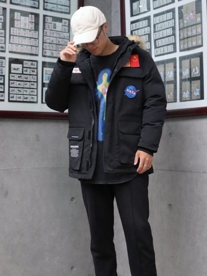 采用冲锋衣款式,潮流时尚。面料厚实,穿着舒服保暖性好。NASA联名款真的好看,黑色经典百搭耐看不挑人,男女都可以穿,爱了。