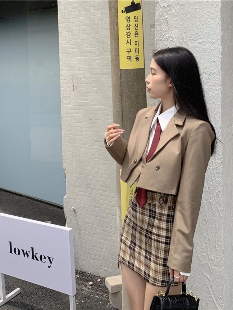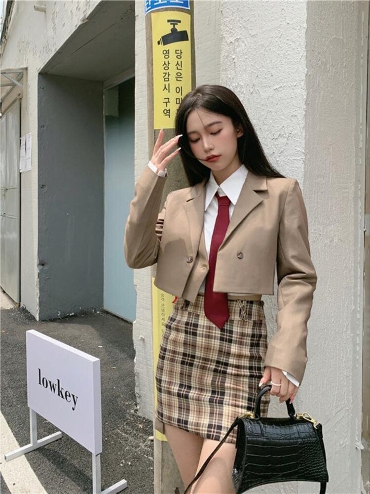 简洁干练的时尚都市西装套装,干练的翻领,修身短款的小外套,都能勾勒出你纤细性感的曲线