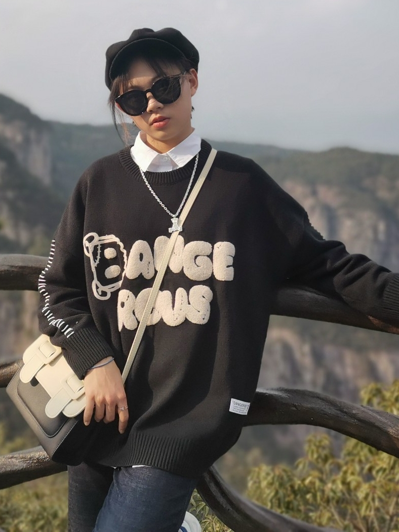 这款连帽卫衣,在帽子的设计上运用了绒毛元素,毛茸茸的绒毛给人以舒适温暖的触感,又不失可爱俏皮感,连帽款式是减龄利器,而帽身的印花也很特别,品牌logo点缀在胸前,让整个冬日显得温暖又不失青春活力。